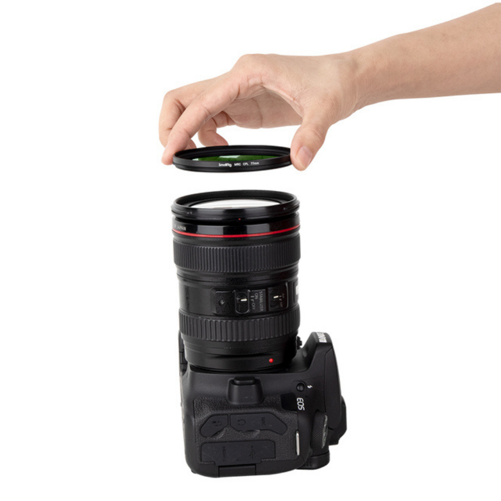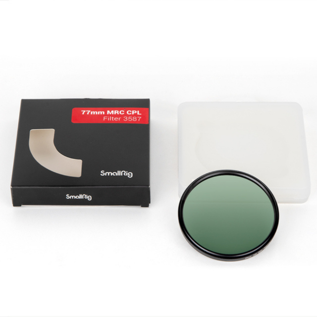 El filtro SmallRig 77 mm MRC CPL 3587 es un filtro polarizador multicapa de doble cara diseñado para eliminar los reflejos de superficies no metálicas, como el agua y el cristal, lo que aumenta la intensidad del color y, al mismo tiempo, conserva los colores vivos de las fotografías o los vídeos. El filtro está fabricado con cristal óptico B270 de alta pureza y alta transmitancia, y está pulido y rectificado con precisión para su uso con objetivos de diferentes distancias focales sin reducir la nitidez de la imagen. Ambos lados están recubiertos con 18 capas que aumentan la transmisión de la luz y reducen los reflejos. Estos recubrimientos son resistentes al moho y al agua, están endurecidos para evitar que se formen manchas y son fáciles de limpiar y mantener, por lo que son un elemento básico en cualquier bolsa de equipo. El soporte del filtro, fabricado en aleación de aluminio de calidad aeronáutica, está mecanizado con CNC, grabado con láser y anodizado para un uso duradero sin desgaste. El filtro es compatible con objetivos de 77 mm de diámetro.