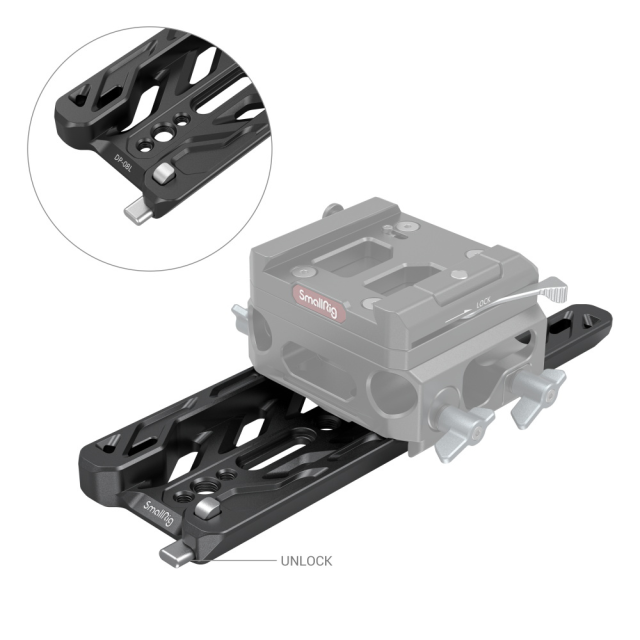 La placa de cola de milano ligera SmallRig 8'' ARRI 3770 es compatible con placas base ARRI, como la SmallRig Baseplate 3067, 1642, etc . Está equipada con varios orificios roscados de 1/4''-20 y 3/8''-16 para su montaje en trípode, así como con orificios pasantes para el kit de montaje, la placa base y la placa de queso. Ambos extremos cuentan con un pasador antirrotura, lo que permite montar o desmontar rápidamente la cámara tanto por delante como por detrás, garantizando al mismo tiempo su seguridad.