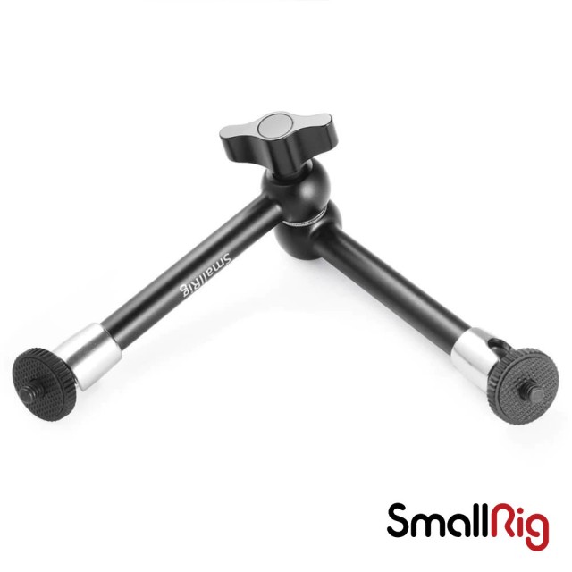 Está equipado con tornillos de 1/4'' en ambos extremos. Por lo tanto, en un extremo se puede fijar el monitor mediante un tornillo de 1/4'' y en el otro extremo se pueden fijar accesorios con orificios roscados de 1/4''-20, como una jaula, un riel NATO 1973, una barra de 15 mm 1182 y una abrazadera de barra de fijación rápida 1976, etc. En el tornillo de 1/4'' hay fijada una almohadilla de goma que evita que se raye el monitor y ayuda a fijarlo con mayor firmeza. Para mayor comodidad, está equipado con una tuerca de mariposa ergonómica que permite ajustar cualquier ángulo según sus necesidades.