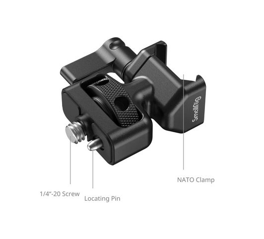 Fija de forma segura los sistemas inalámbricos de follow focus o los mandos de rueda manual a las rieles NATO o a los orificios roscados de 1/4"-20 mediante el adaptador SmallRig 3264, una abrazadera compacta de aluminio de 35 g con tornillo antideslizante de 1/4"-20 con pasador de posicionamiento, abrazadera de fijación rápida NATO con llave lateral y capacidad de carga de 8 kg, ideal para controlar el follow focus en el lateral de la jaula con los kits SmallRig 4296 y 429.