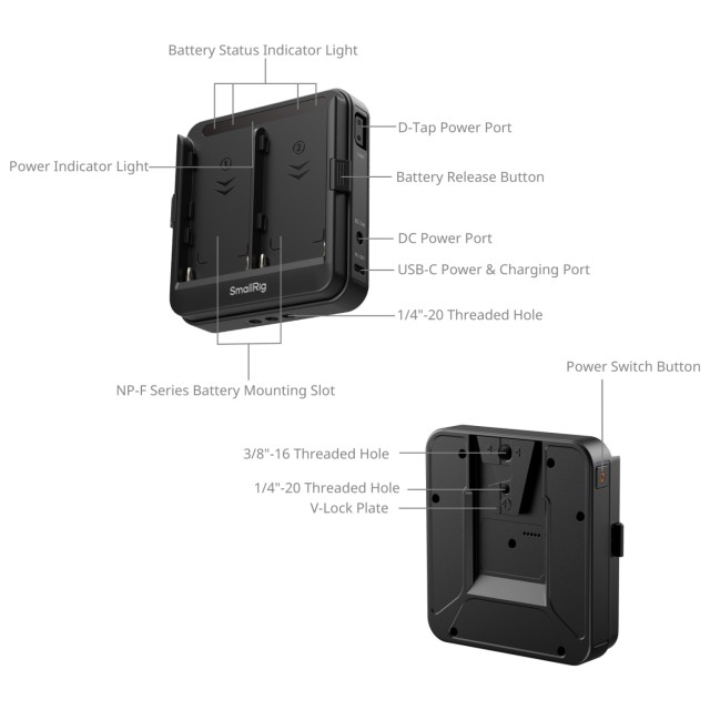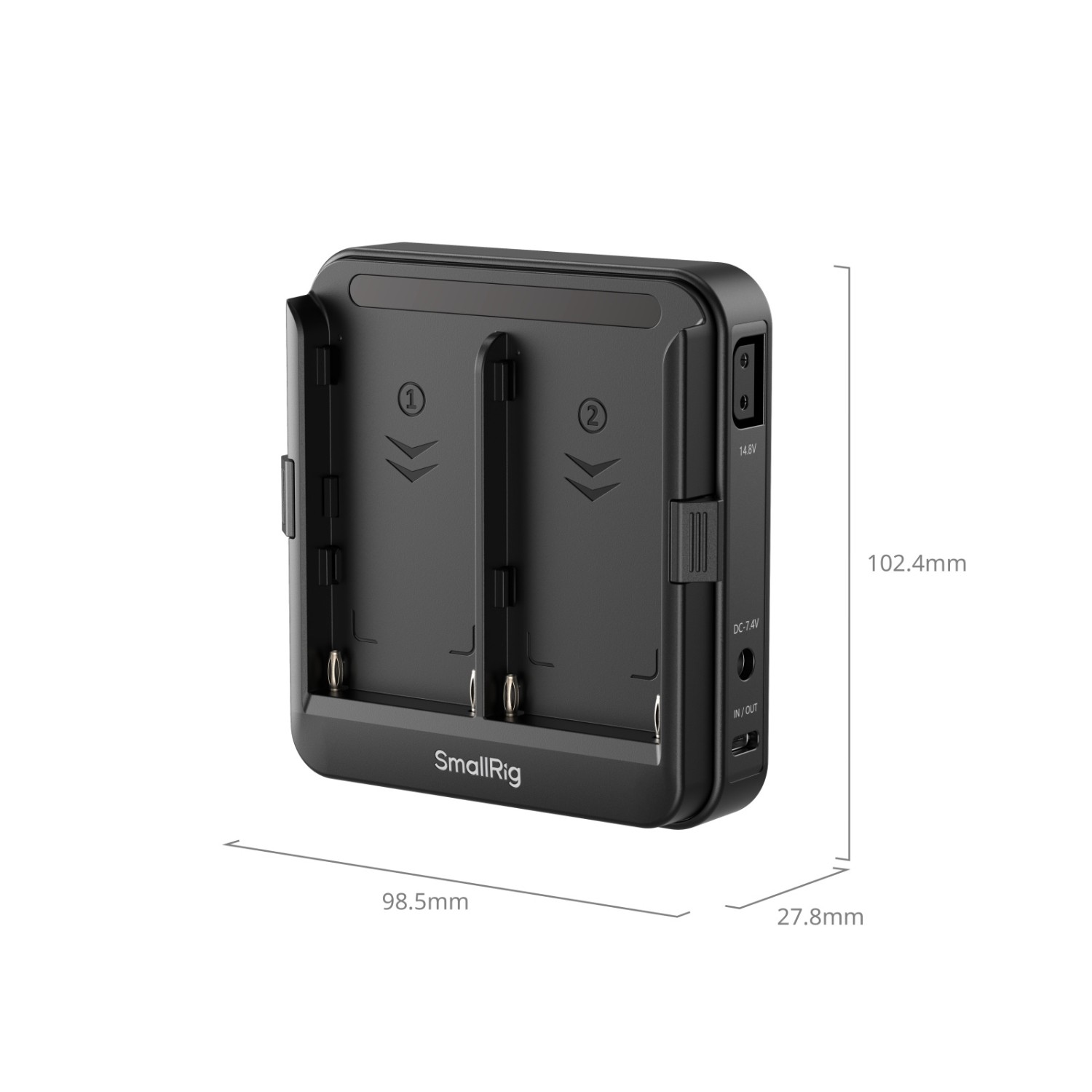 El adaptador SmallRig para baterías NP-F (compatible con SAI) es una solución de alimentación universal diseñada para garantizar un suministro eléctrico ininterrumpido y estable a cámaras, monitores, luces LED y otros dispositivos que utilicen baterías de la serie NP-F. Admite una o dos baterías NP-F y permite cambiar las baterías en funcionamiento sin necesidad de apagar los dispositivos conectados, por lo que funciona eficazmente como un SAI.
