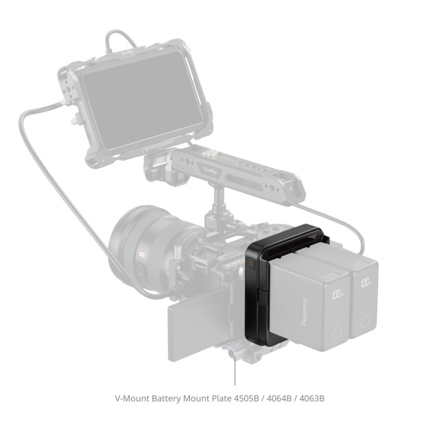 El adaptador se puede montar mediante una placa con fijación en V o los orificios roscados inferiores de 1/4"-20, lo que ofrece opciones flexibles de instalación en rigs, jaulas u otros montajes. Su construcción robusta de PC, aleación de aluminio y acero inoxidable garantiza una larga vida útil en entornos profesionales.