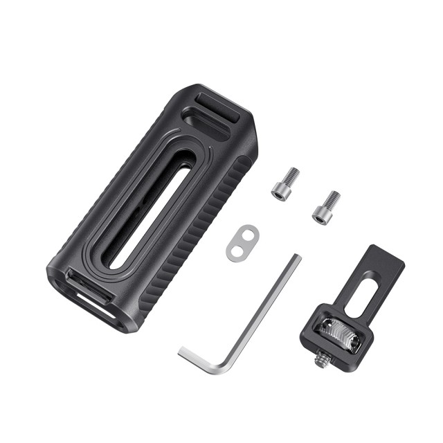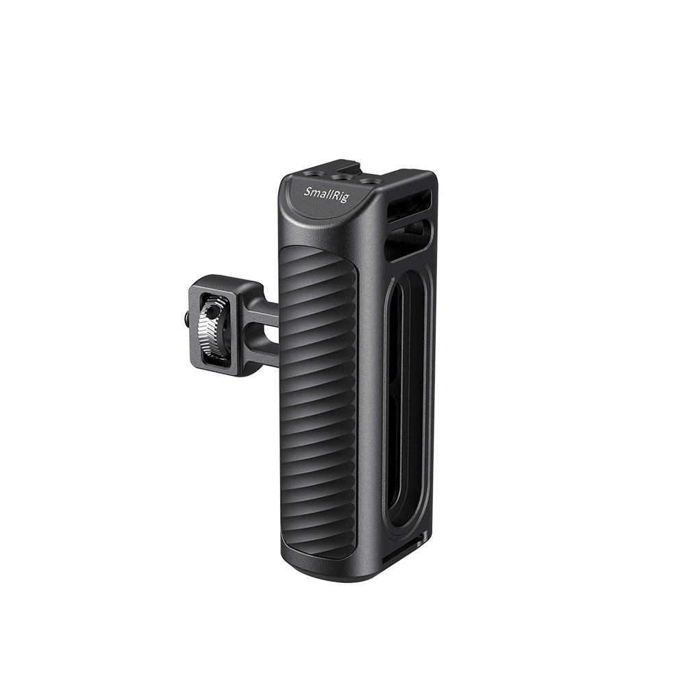 La empuñadura lateral de aluminio SmallRig para la jaula de smartphone HSS2424 está diseñada para adaptarse a las jaulas para teléfonos SmallRig y mejorar la comodidad de sujeción, lo que permite una grabación más duradera y estable con el teléfono. Es compatible con las jaulas para teléfonos móviles SmallRig Pro, como las 2775, 2776, etc., y con las jaulas universales SmallRig, como las CPU2391B, 2791, etc. La llave integrada se puede utilizar para ajustar la altura del mango y también para apretar el tornillo de fijación. Está equipada con tres orificios estándar con rosca de 1/4-20 y un soporte frío en la parte superior para fijar accesorios, como un micrófono o una luz LED. El mango es compatible con la correa de mano SmallRig PAC2456 para una grabación a mano alzada más segura y estable. Pesa solo 224 g y cuenta con un cuerpo de aluminio con revestimiento de silicona antideslizante, lo que garantiza un agarre cómodo durante un uso prolongado.