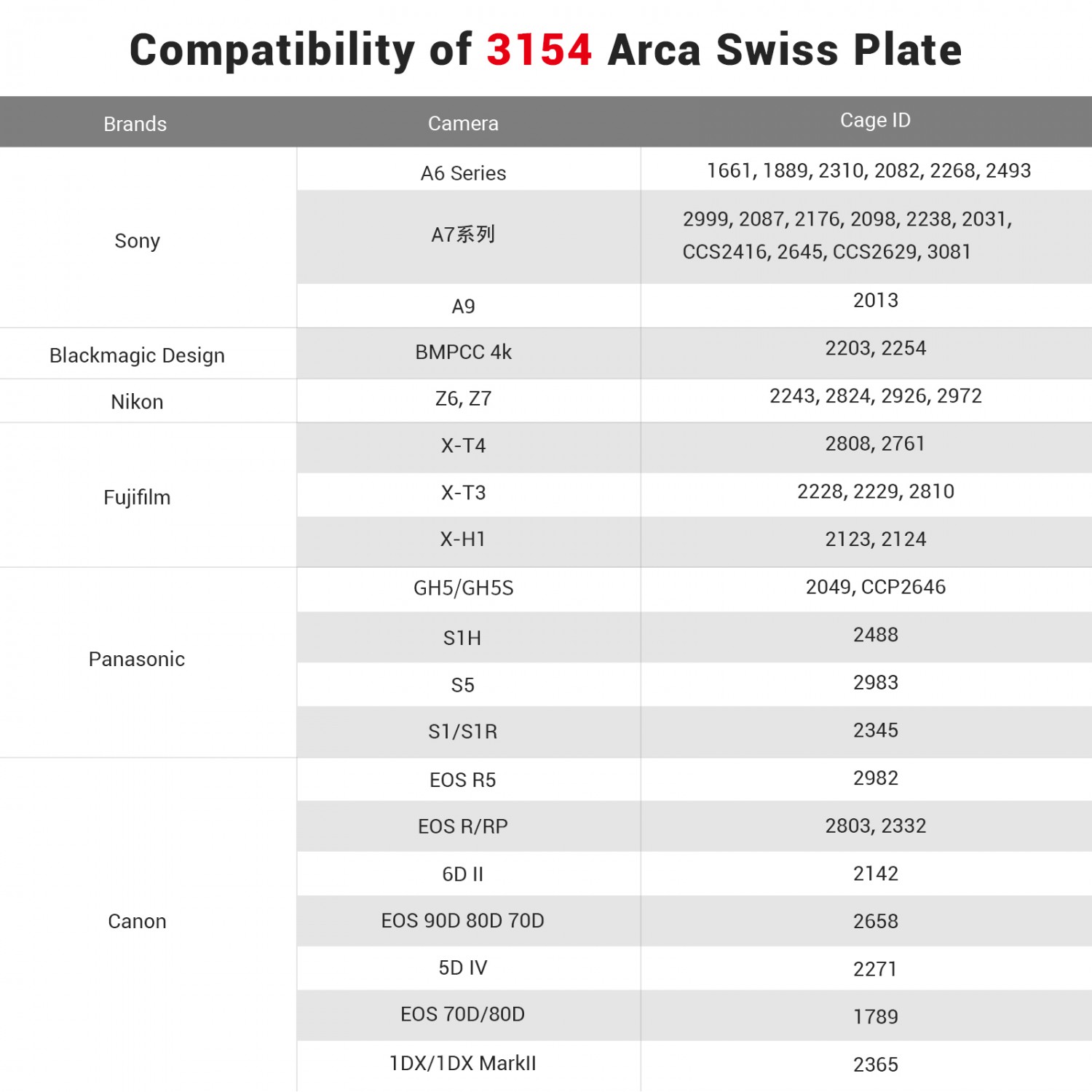La distancia entre los dos tornillos de fijación de 1/4 es de 18 mm, lo que la hace compatible con la mayoría de las jaulas SmallRig, como la jaula 2999 para la Sony A7S III, la jaula 2982 para la Canon R5/R6, la jaula 2926 para las cámaras Nikon de la serie Z, etc. Además, la placa cuenta con un diseño central abierto, por lo que se puede acceder a la mayoría de los tornillos de fijación de la cámara a través de la placa y se puede desmontar fácilmente la cámara de la jaula para colocarla en un trípode u otros soportes. La placa también cuenta con almohadillas de goma que protegen la jaula.