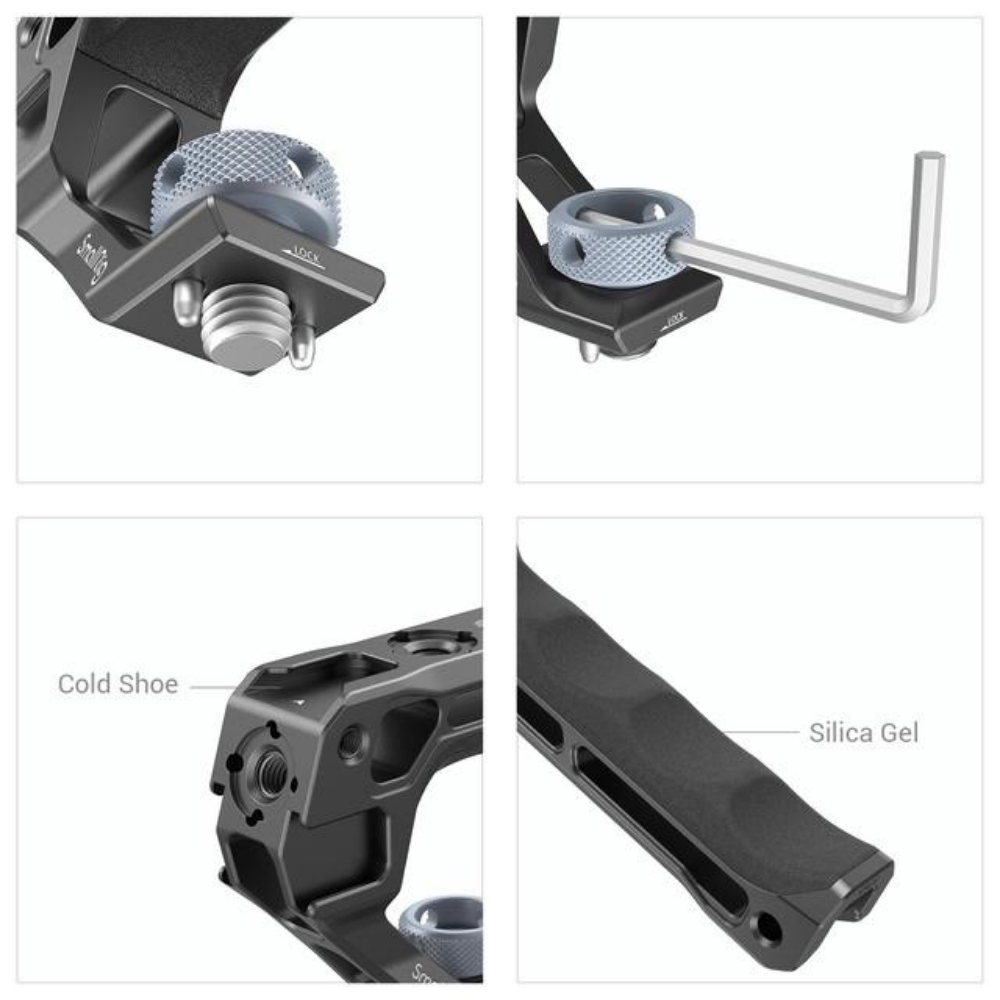 La empuñadura orientable SmallRig ARRI 3765 está diseñada para facilitar las grabaciones en ángulo bajo y reducir la fatiga de las manos. La empuñadura ergonómica, con silicona antideslizante y resistente al hielo, es cómoda y, gracias a su estructura hueca, pesa solo 124 g. Cuenta con 3 zapatas frontales y 2 traseras que permiten montar simultáneamente un micrófono, una luz LED, un monitor y otros accesorios. Los orificios de fijación ARRI de 3/8"-16 son compatibles con los soportes para monitor 2903 y 2348; los orificios roscados de 1/4"-20 son compatibles con el brazo 2070 Magic Arm para monitores y el mando a distancia 2924 para la grabación. La llave Allen ayuda a apretar el tornillo de fijación, lo que facilita la instalación y el desmontaje.