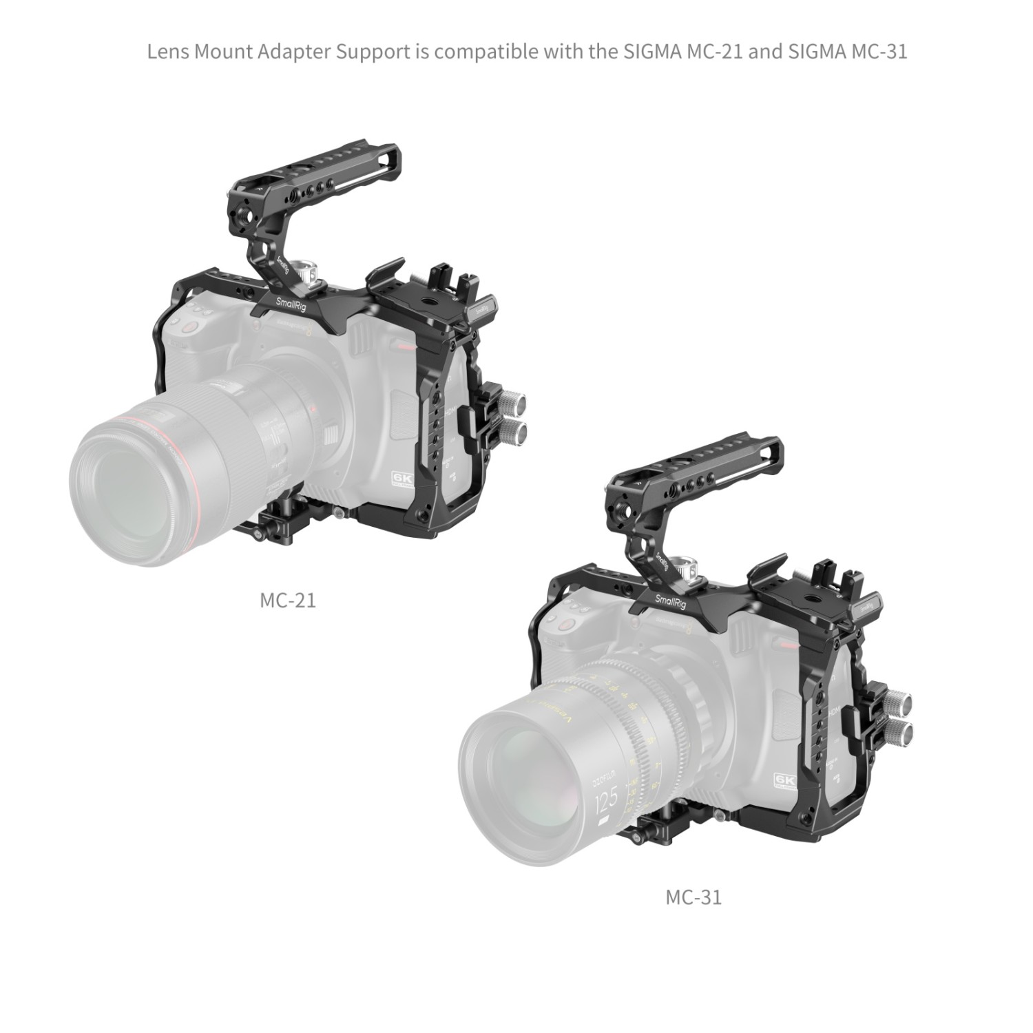 El kit SmallRig Basic Cage Kit para la cámara Blackmagic Design Cinema Camera 6K 4574 está diseñado para proporcionar a los creadores una cómoda grabación desde ángulos bajos, proteger la cámara y ofrecer más opciones de ampliación con accesorios. El kit incluye una jaula, un asa superior, una abrazadera para cables HDMI y USB-C, un soporte para fijar el SSD y un soporte para el adaptador de objetivo. El sistema de fijación de tres puntos asegura la cámara mediante dos tornillos de 1/4"-20 en la base y un tornillo de 1/4"-20 en la parte superior, mientras que las almohadillas de silicona integradas evitan los arañazos. La jaula ofrece libre acceso a todas las interfaces de la cámara, las ranuras para tarjetas, la pantalla abatible y el compartimento de la batería. El soporte del adaptador de objetivo es compatible con los adaptadores Sigma MC-31, Sigma MC-21 y adaptadores de objetivo similares, lo que evita daños en la montura de la cámara. El kit también incluye abrazaderas para cables HDMI y USB-C que protegen los puertos de la cámara y evitan la pérdida de señal. La empuñadura superior ergonómica tipo ARRI ofrece a los creadores una cómoda filmación desde ángulos bajos y facilita el manejo de la cámara. El soporte para SSD es compatible con los discos SSD Samsung T5/T7 y cuenta con un soporte de zapata fría integrado para un montaje y desmontaje rápidos. Gracias a las numerosas opciones de montaje, como los orificios roscados de 1/4"-20, los orificios roscados de 3/8"-16, los orificios de posicionamiento ARRI, las zapatas frías, riel NATO y soportes QD, el kit admite accesorios como brazos mágicos, asas laterales, asas superiores, abrazaderas de varilla, placas base, luces LED de vídeo, micrófonos y mucho más.