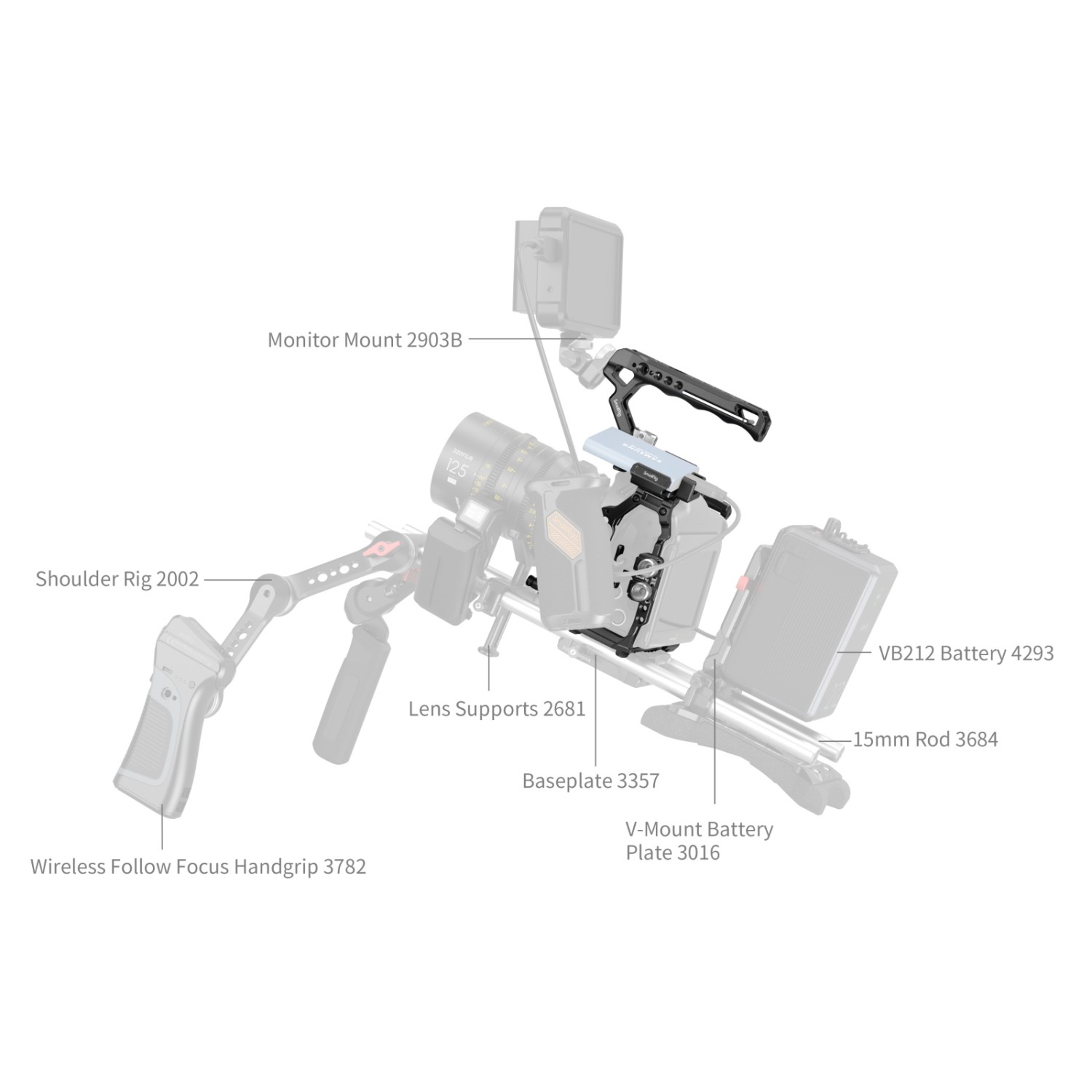 1. Jaula completa dedicada para la Blackmagic Design Cinema 6K, que se puede convertir en una jaula de medio tamaño para una mayor versatilidad.