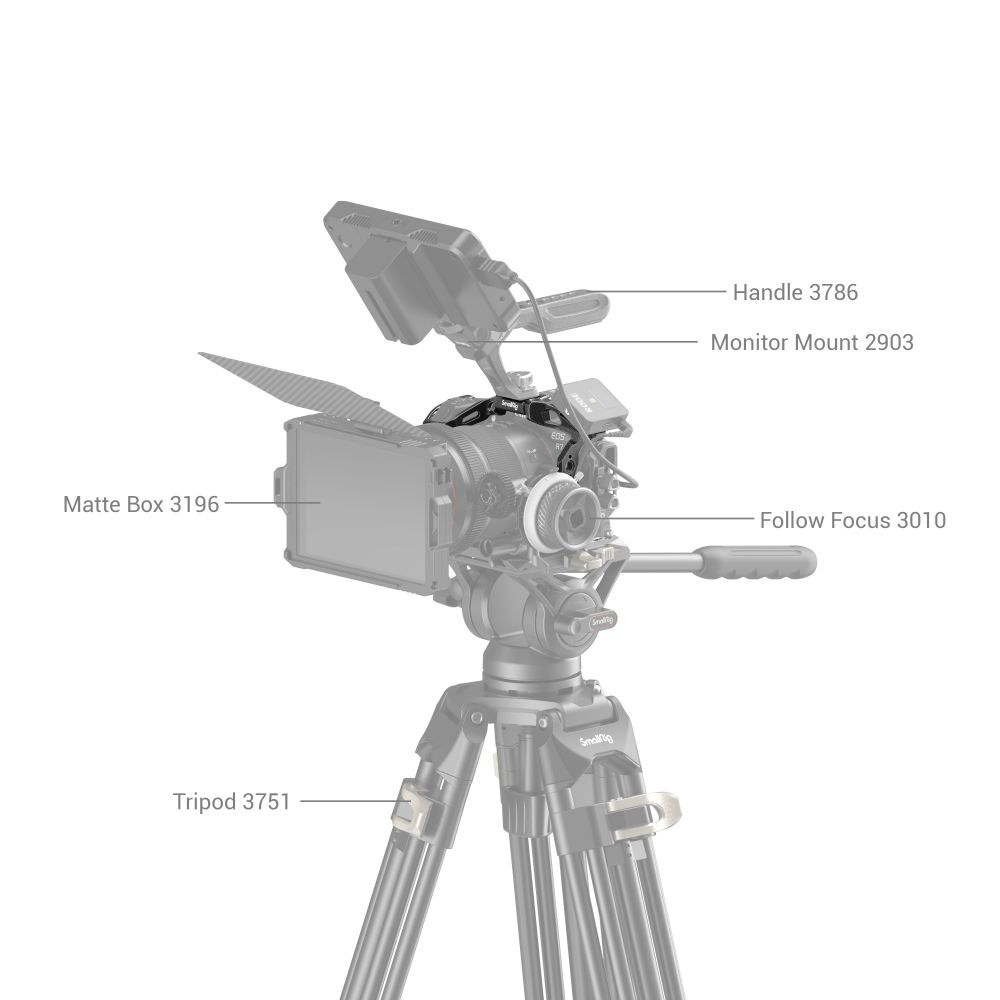 La abrazadera SmallRig de 12 mm/15 mm con una sola barra (3598) funciona en combinación