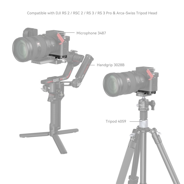 3. Placa de fijación rápida Arca-Swiss para cambiar rápidamente entre el trípode o los gimbals DJI RS 2 / RSC 2 / RS 3 / RS 3 Pro.