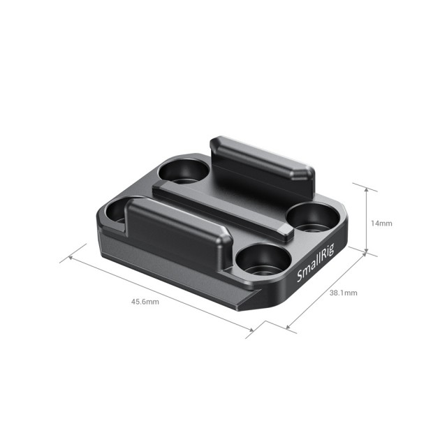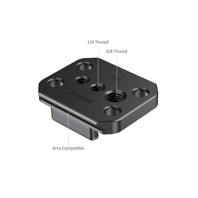 El adaptador SmallRig para correas con placa de fijación rápida Arca para cámaras GoPro APU2668 facilita el montaje de las correas GoPro en cabezales de trípode compatibles con Arca. Basta con introducir la correa lateralmente en la parte superior del adaptador hasta que encaje en su sitio. El adaptador cuenta en su parte inferior con una placa Arca estándar, lo que permite fijar la cámara GoPro a cualquier plataforma Arca. También está equipado con orificios roscados de 1/4"-20 y 3/8"-16, así como con orificios pasantes para el montaje de tornillos. Todo el adaptador está fabricado en aluminio anodizado resistente, pero tiene un diseño compacto y ligero.