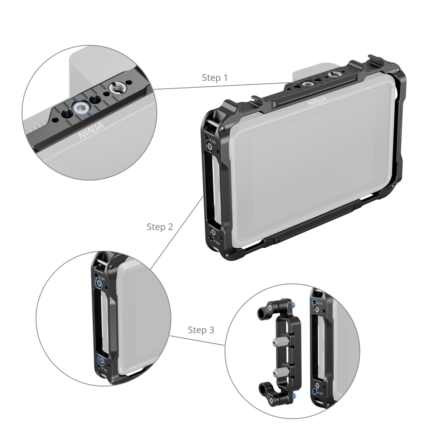 - Protección resistente: La jaula para monitores de la serie Atomos Ninja protege el cuerpo del dispositivo y garantiza su seguridad y una larga vida útil.