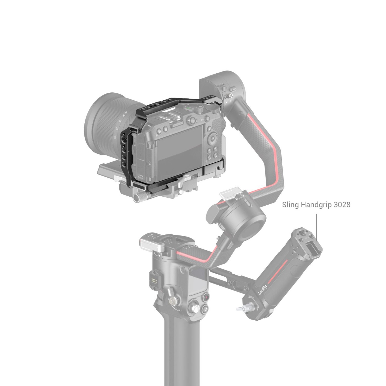 La jaula SmallRig para Nikon Z 30 3858 está diseñada para proteger la cámara y fijar los accesorios. La jaula se fija mediante un tornillo de 1/4"-20 y un adaptador con cierre lateral en el lado derecho, y está equipada con almohadillas de silicona que evitan arañazos y mantienen un acceso completo a todos los botones, interfaces, pantalla abatible, etc. También cuenta con un brazo de suspensión en la tapa de la batería que se adapta a la curvatura de la cámara para un agarre cómodo y facilita el cambio de batería; orificios roscados de 1/4"-20 y orificios de fijación ARRI de 3/8"-16 para el mango superior HTS2756, 3765, el asa lateral HSS2425, 3814, la abrazadera para cable HDMI 1822; y un soporte de zapata fría en la parte superior para micrófono y luz LED para vlogging. La placa de fijación rápida Arca-Swiss en la parte inferior es compatible con el trípode Arca-Swiss y el estabilizador DJI RS 2 / RSC 2 / RS 3 / RS 3 Pro para cambiar rápidamente entre los modos de trípode, estabilizador y cámara de mano. Además, para tu comodidad, hay una llave magnética de doble cara en la parte inferior para el montaje y desmontaje.
