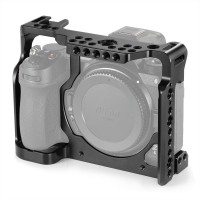 La jaula SmallRig para Nikon Z6/Nikon Z7 2243 es una jaula moldeada diseñada para ofrecer una protección versátil y diversas opciones de fijación para las cámaras Nikon Z6 y Z7. La jaula se fija a la cámara mediante un orificio inferior con rosca de 1/4"-20 y cuenta con un orificio con rosca de M2,5 en el lado izquierdo como segundo punto de fijación, lo que evita que la cámara se tuerza. La jaula de aluminio de una sola pieza cuenta con varios orificios con roscas de 1/4"-20, 3/8"-16 y Arri 3/8" para fijar accesorios. Además, en la parte superior cuenta con un saliente para fijar un micrófono y en el lado izquierdo hay una guía NATO que permite desmontar rápidamente el conjunto.