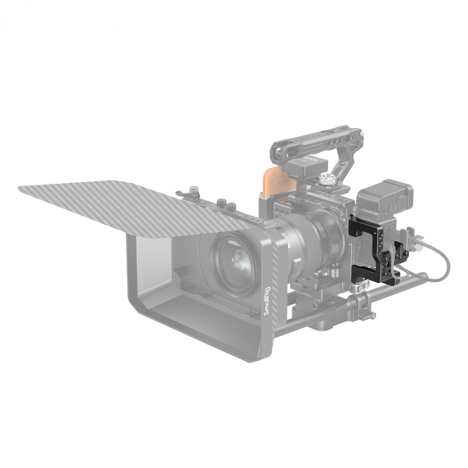 La jaula SmallRig para el visor electrónico SIGMA EV-11 3226 está diseñada para proporcionar protección y más puntos de fijación para accesorios del visor SIGMA EV-11. La jaula es compatible con la jaula para la cámara SIGMA fp 3211, a la que se fija mediante un tornillo de 1/4"-20 en la parte inferior y un tornillo M2,5 en la parte frontal. Está equipada con varios orificios roscados de 1/4"-20 y orificios de posicionamiento de 3/8"-16 en el lado izquierdo para montar la abrazadera de cable 1693, la empuñadura lateral HSS2426 y el brazo mágico 2115.