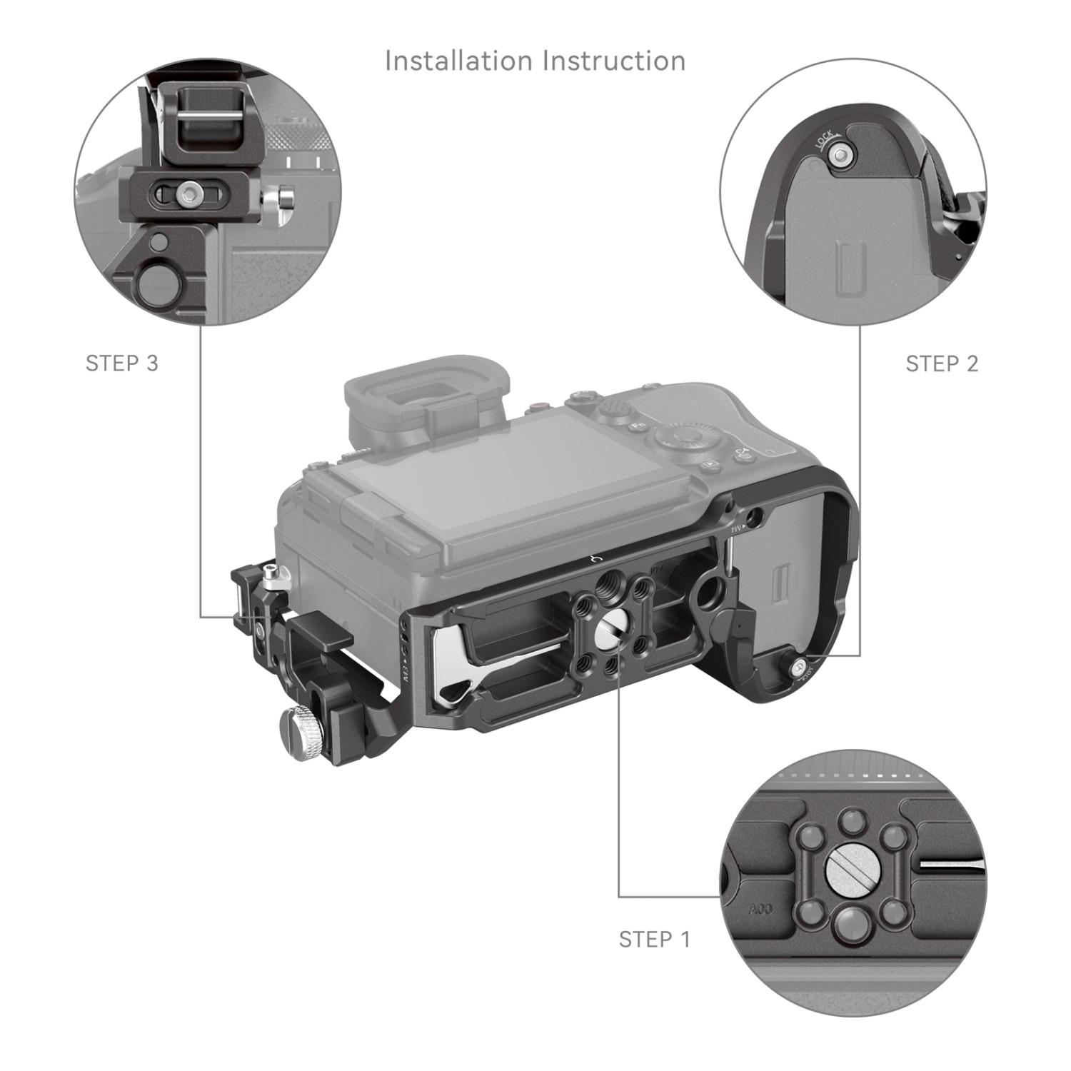 La jaula SmallRig para la Sony Alpha 9 III 4533 está diseñada para proteger la cámara y permitir la instalación de accesorios. El sistema de fijación de tres puntos contra el desplazamiento sujeta firmemente la cámara Alpha 9 III mediante pasadores de posicionamiento, un tornillo de 1/4"-20 en la parte inferior y un tornillo M2,5 en el lado izquierdo. El diseño optimizado de la jaula garantiza un acceso sin obstáculos a los botones y ofrece un uso más cómodo.
