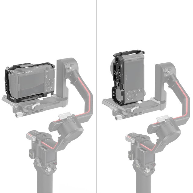 La jaula está equipada con una zapata fría tanto en la parte superior como en la inferior, lo que permite conectar un micrófono y una luz LED, creando así una solución completa para vlogging. La placa de fijación rápida tipo Arca en la parte inferior permite el montaje directo en un trípode tipo Arca para cambiar rápidamente entre los modos de grabación manual, con trípode y con estabilizador. Los orificios roscados inferiores son compatibles con la placa de fijación rápida de los estabilizadores DJI RS 2 / RSC 2 / RS 3 / RS 3 Pro.