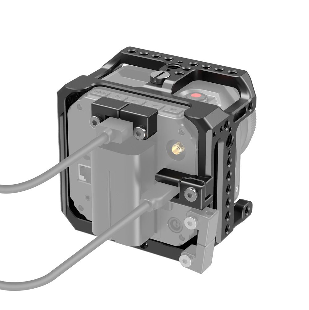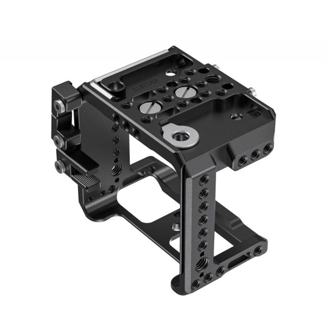 La jaula SmallRig para la Z CAM E2C CVZ2372 está diseñada para ofrecer protección y roscas de montaje para accesorios como monitores, micrófonos y empuñaduras. La jaula se fija a la cámara mediante tres tornillos de 1/4", uno en la parte superior y dos en la inferior, para evitar que se tuerza. Cuenta con varios orificios de posicionamiento de 1/4"-20 y Arri…
