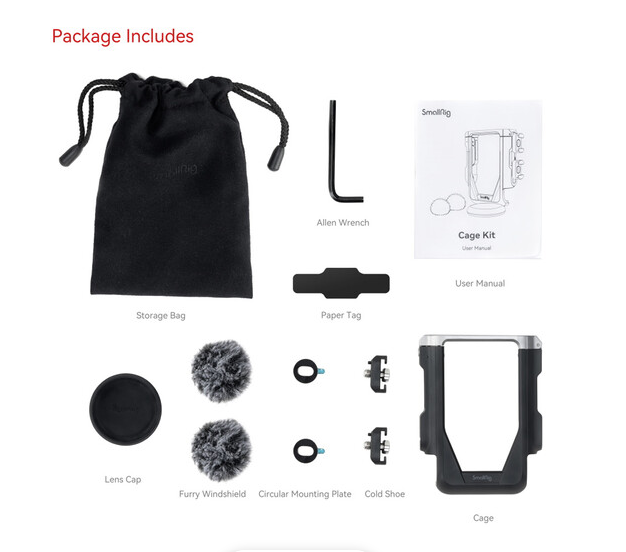 El kit SmallRig Cage Kit para la Canon PowerShot V10 es un conjunto completo y listo para usar que convertirá tu cámara compacta para vlogs en una herramienta profesional, protegida y muy versátil. La jaula compuesta negra, que se ajusta perfectamente a la cámara, pesa solo 42 g y añade un volumen mínimo, al tiempo que proporciona acceso completo a todos los controles y puertos. Incluye cuatro roscas internas de 1/4"-20 y dos soportes para fijar luces, micrófonos o monitores. Dos protectores antiviento de pelo reutilizables —fijados mediante las placas de montaje circulares incluidas— reducen el ruido del viento hasta en 20 dB para obtener un sonido nítido en exteriores, y dos adaptadores amplían las posibilidades de accesorios. Una funda de silicona blanda protege el objetivo durante los desplazamientos y la bolsa acolchada garantiza un almacenamiento seguro de todos los componentes. El kit se monta en cuestión de segundos con la llave hexagonal incluida, lo que lo hace ideal para vlogueros, creadores de vídeos de viajes y creadores de contenido que necesitan resistencia, un sonido nítido y flexibilidad de montaje sin aumentar el peso. El kit cuenta con una garantía limitada del fabricante de dos años.
