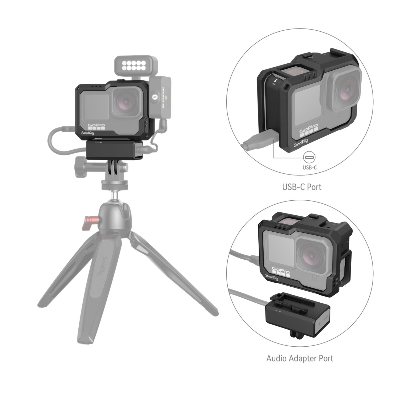 El kit SmallRig Cage Kit para GoPro Hero 13/12/11/10/9 en color negro (3083C) es una jaula universal con un diseño a medida, que incluye elementos de fijación rápida, soportes para soportes de montaje en frío y acceso completo a los puertos y ranuras, ideal para mejorar tu equipo GoPro.