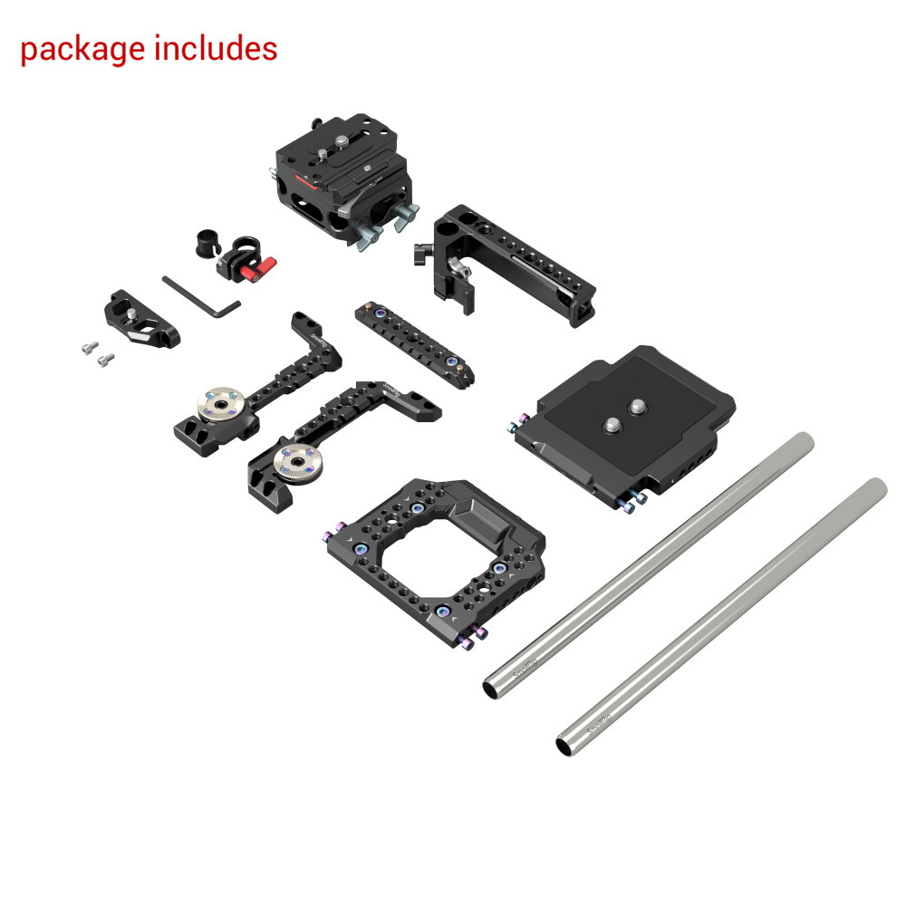 Entre otros accesorios se encuentra la placa base Manfrotto de 15 mm para ARRI, que permite cambiar de escena y ajustar el centro de gravedad; la barra de acero inoxidable de 15 mm es compatible con el mini Follow Focus 3010 y el mini Matte Box 3196 para lograr una experiencia de rodaje más profesional; la abrazadera de barra de 15 mm ofrece una solución ligera para el enfoque y el soporte del anillo adaptador protege la interfaz de la cámara. La placa inferior también incluye una llave Allen para facilitar el montaje y desmontaje.