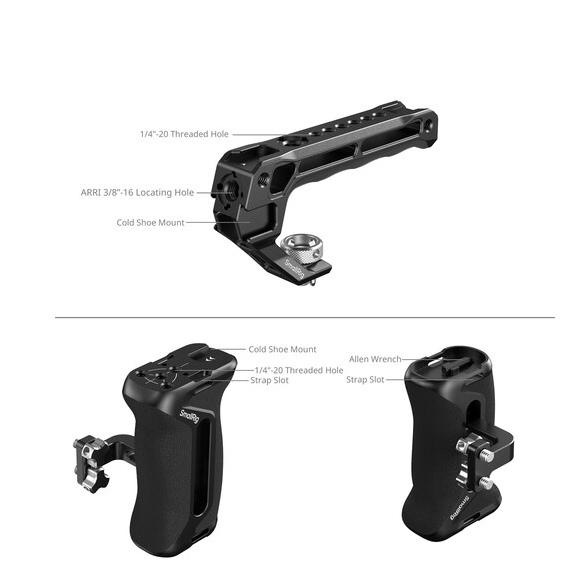 El paquete incluye una empuñadura superior con soporte tipo ARRI, que permite grabar cómodamente a mano alzada y realizar tomas desde un ángulo bajo, al tiempo que ofrece más roscas de montaje y opciones de fijación en la zapata fría. La empuñadura lateral ajustable se puede montar en cualquier lado para una mayor estabilidad al grabar a mano alzada y un manejo ergonómico. El paquete también incluye una abrazadera para el cable HDMI, que lo sujeta y evita que se desconecte accidentalmente durante la grabación.