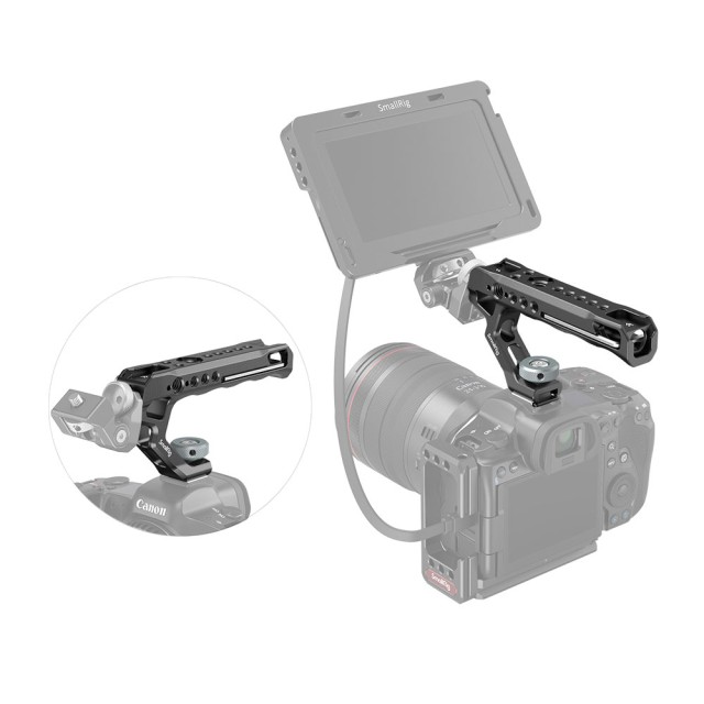 El SmallRig Cold Shoe Handle 2094 está diseñado para fijarse a la cámara o a la jaula mediante un soporte estándar para zapata, proporcionando así más puntos de sujeción para los accesorios. El mango se fija mediante un tornillo de mariposa y permite utilizar la llave hexagonal integrada para mayor seguridad. Está equipado con varias roscas de 1/4"-20, 3/8"-16 y ARRI 3/8"-16 para accesorios como el soporte para monitor 2294 y el soporte para monitor 2348. Integra tres soportes de zapata fría, uno de los cuales está diseñado con un pasador antirretirada, lo que permite montar micrófonos y luces. La empuñadura también ofrece una abrazadera de barra de 15 mm para accesorios compatibles con barra.