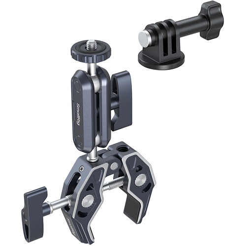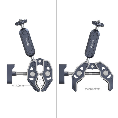 El kit de abrazaderas SmallRig Crab-Shaped Super Clamp (con brazo mágico con rótula) 5373 está fabricado en aleación de aluminio de calidad aeronáutica y acero inoxidable, y se caracteriza por su mecanizado CNC y su tallado de precisión para aumentar su robustez y resistencia. Incluye un diseño biónico del esqueleto y una estructura de pinza tipo tiburón para una mayor fuerza de sujeción, mientras que los orificios de posicionamiento ARRI de 3/8"-16 y el orificio roscado de 3/8"-16 permiten una amplia gama de accesorios.