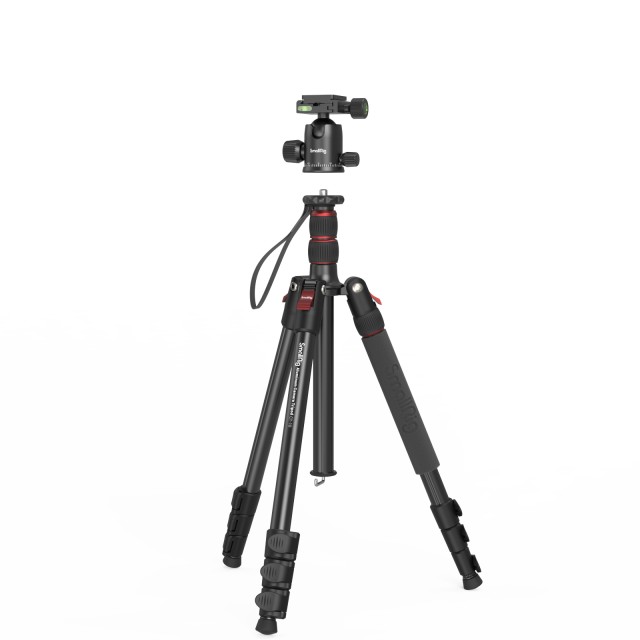 El trípode SmallRig CT-10 Aluminum Camera Tripod 3935 está diseñado principalmente para la grabación de vídeos, filmaciones, retransmisiones en directo, etc. Cuenta con una rosca de 1/4"-20 en la parte superior para fijar accesorios y, para una mayor compatibilidad, está equipado con una rosca de 1/4"-20 × 3/8''-16. Este producto compacto, que se puede extender hasta 180 cm y plegar hasta 43 cm, pesa solo 1530 g y es ideal para la fotografía en exteriores. La rótula metálica giratoria de 360° tiene una bola de Φ36 mm, es resistente y estable; las robustas patas de aleación de aluminio soportan hasta 15 kg y el soporte cuenta con tres orificios con rosca de 1/4"-20 para fijar el equipo según sea necesario. El trípode se puede convertir fácilmente en un monopié y se suministra con tres niveles de burbuja que satisfacen diversos requisitos de calibración. El paquete también incluye un soporte para smartphone para retransmisiones en directo y la grabación de vídeos cortos.