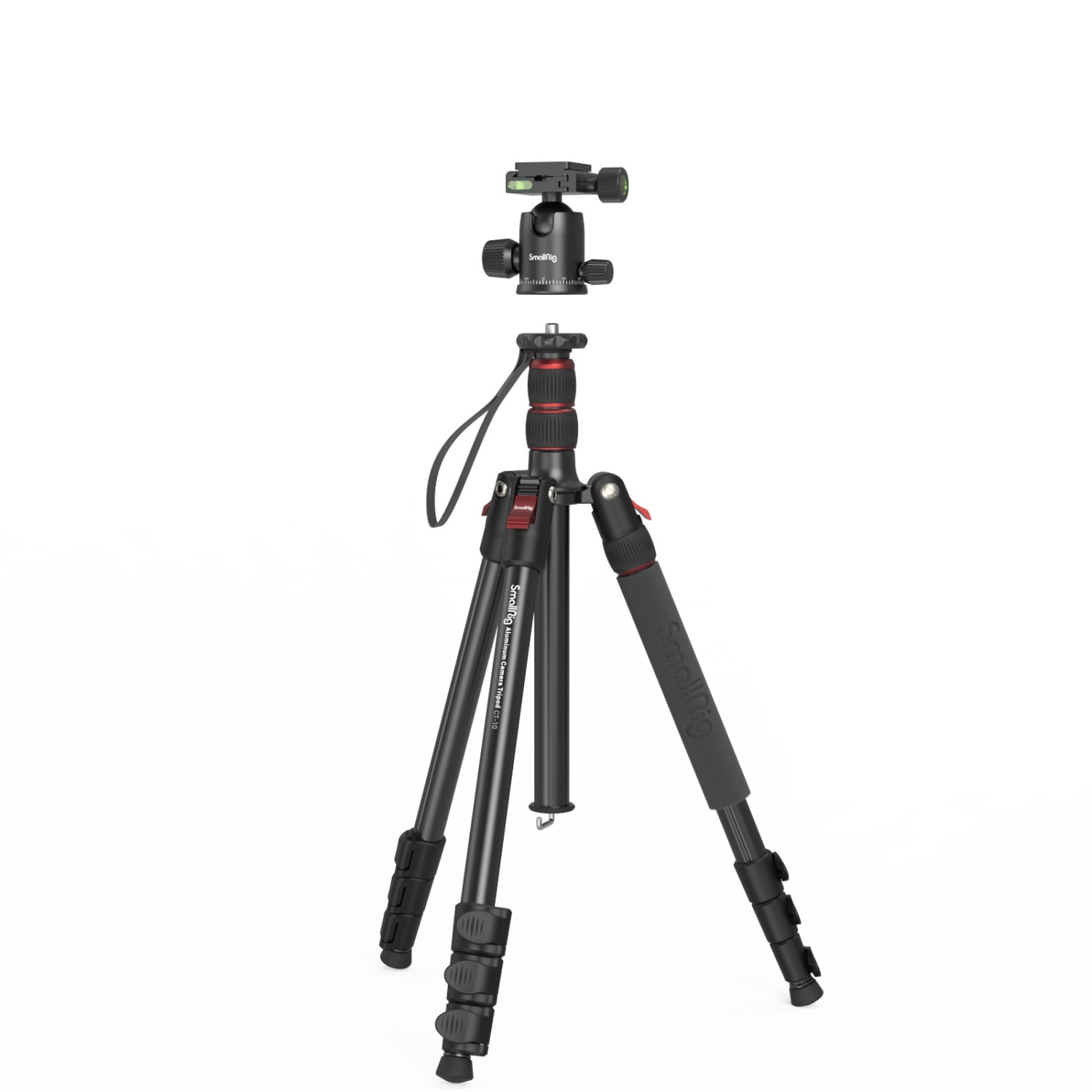 El trípode de aluminio SmallRig CT-10 para cámaras 3935 está diseñado principalmente para la grabación de vídeo, filmación, retransmisiones en directo, etc. Cuenta con un tornillo de 1/4"-20 en la parte superior para fijar accesorios y, para una mayor compatibilidad, está equipado con un tornillo de rosca hueca de 1/4"-20 × 3/8''-16. Este producto compacto, que se puede extender hasta 180 cm y plegar hasta 43 cm, pesa solo 1530 g y es ideal para la fotografía en exteriores. La rótula metálica giratoria de 360° tiene una bola de Φ36 mm, es resistente y estable; las robustas patas de aleación de aluminio soportan hasta 15 kg y el soporte cuenta con tres orificios con rosca de 1/4"-20 para fijar el equipo según sea necesario. El trípode se puede convertir fácilmente en un monopié y se suministra con tres niveles de burbuja que satisfacen diversos requisitos de calibración. El paquete también incluye un soporte para smartphone para retransmisiones en directo y la grabación de vídeos cortos.