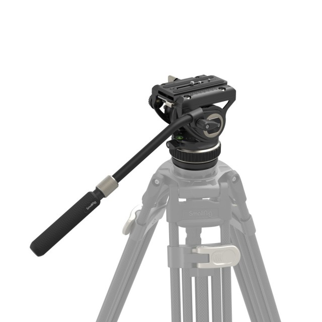El cabezal de vídeo soporta hasta 10 kg. Cuenta con un soporte de placa de fijación rápida de nuevo diseño, que es una solución de montaje más eficaz que los soportes deslizantes tradicionales, y es compatible con la placa de fijación rápida DJI RS 2 / RS 3 / RS 3 Pro y la placa de fijación rápida Manfrotto para cambiar fácilmente entre el rodaje con estabilizador y el rodaje con trípode. Incluye un mango telescópico extraíble para facilitar su almacenamiento y manejo, y es apto tanto para zurdos como para diestros. El cabezal de vídeo también cuenta con un orificio roscado de 1/4"-20 para acoplar el brazo mágico y otros accesorios, así como una llave integrada que facilita la instalación y la liberación de la cámara.