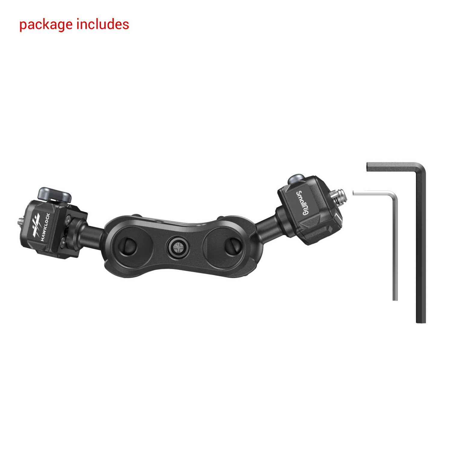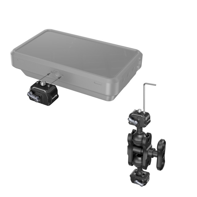 El SmallRig Magic Arm con rótula de fijación rápida 3515C es un soporte de fijación rápida que cuenta en ambos extremos con orificios para tornillos con rosca de 1/4"-20 y almohadillas para aumentar la fricción y evitar arañazos. Su rótula de fijación rápida es compatible con dispositivos con rosca de 1/4"-20, como cámaras, monitores, jaulas, placas de montaje, etc., y la placa de fijación rápida se puede apoyar de forma vertical y estable en la placa base, lo que no provoca ninguna desviación. El brazo mágico se puede bloquear y desbloquear fácilmente.