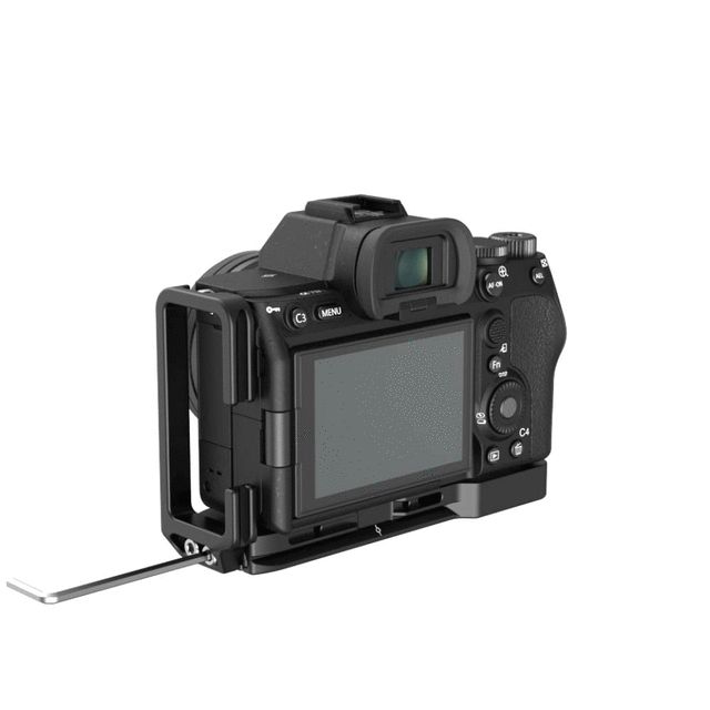 El soporte SmallRig L-Bracket para Sony Alpha 7 V /7R V/7R IV/ IV/ 7S III /Alpha 1 3660 permite cambiar rápidamente entre la orientación horizontal y vertical, al tiempo que mejora la experiencia de sujeción. Se fija a la parte inferior de la cámara mediante un tornillo de 1/4"-20 y un pasador de posicionamiento, y cuenta con una almohadilla de silicona integrada que evita arañazos y deformaciones. En la tapa de la batería hay una llave de husillo que se adapta a la curvatura de la cámara y deja espacio para un agarre cómodo con el meñique. La inserción de piel auténtica seleccionada en la placa base se integra en el cuerpo de la cámara; la placa base y las placas laterales compatibles con el sistema Arca están equipadas con una marca central para el objetivo. La placa lateral es extraíble para permitir la conexión de cables HDMI, y ajustable hacia delante y hacia atrás para poder abrir la pantalla LCD de la cámara Alpha 7 IV/Alpha 7S II 180 grados y girarla 120 grados. Varios orificios roscados de 1/4"-20 en la parte inferior admiten placas de fijación rápida, trípodes y la placa de fijación rápida (base) de los estabilizadores DJI RS 2/RSC 2. Además, la placa base cuenta con un orificio en el lado derecho para una correa de muñeca y un destornillador plano y una llave hexagonal integrados para facilitar la instalación y el desmontaje.