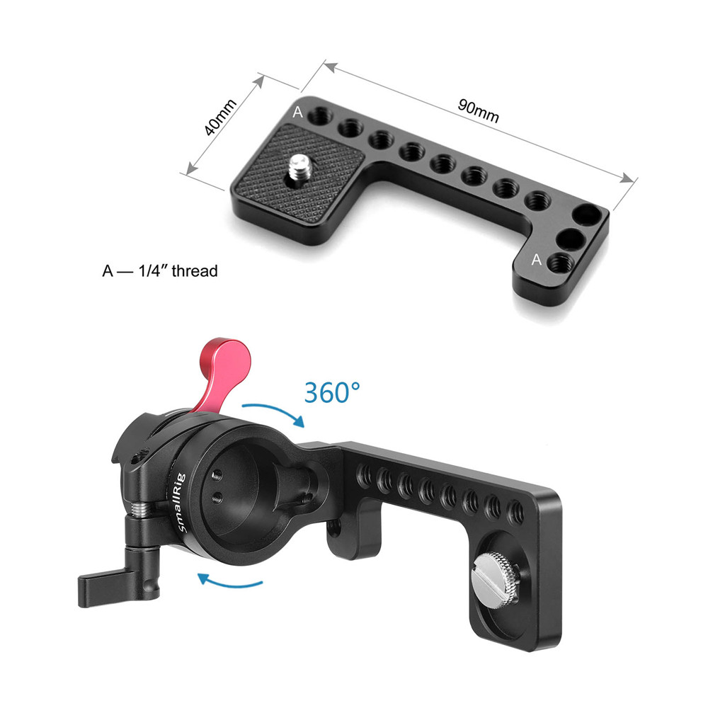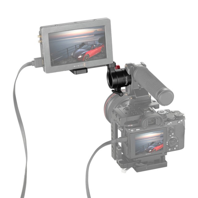 El soporte SmallRig EVF Mount 1594 se puede montar en un riel NATO integrado o en un riel NATO 1195 de la jaula de la cámara por un extremo, mientras que por el otro extremo permite acoplar un monitor o un EVF mediante un tornillo de 1/4”. Cuenta con un ajuste de amortiguación de 360° y permite un ajuste rápido y ángulos de visualización flexibles. Incorpora una almohadilla de goma en la parte superior para evitar arañazos accidentales.
