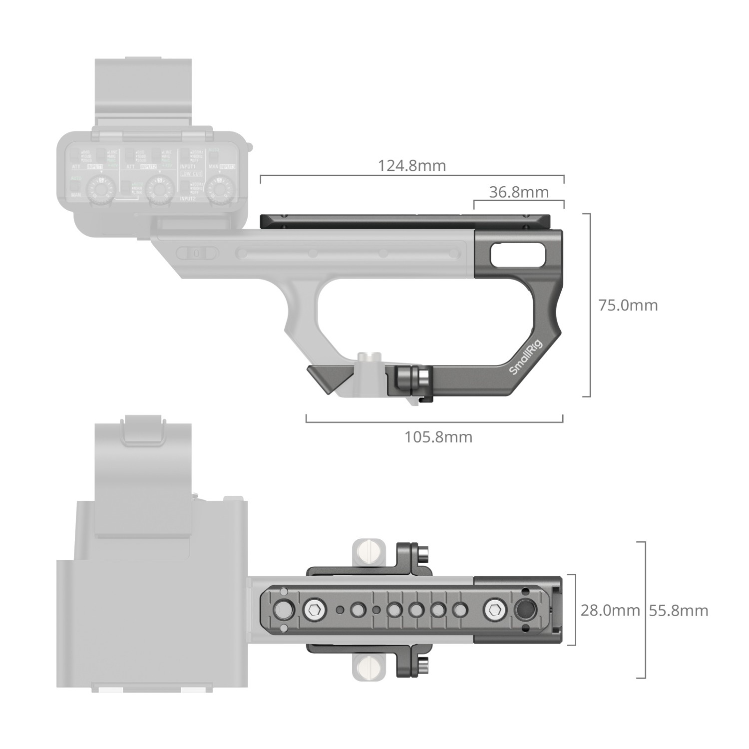 El kit de placa de montaje de extensión SmallRig para la empuñadura XLR de la Sony FX3 / FX30 4830 está diseñado para aumentar la resistencia y mejorar la experiencia de sujeción de la empuñadura XLR, además de proporcionar puntos de montaje para accesorios. La extensión de la empuñadura XLR está diseñada ergonómicamente para mejorar el agarre y la resistencia de la empuñadura XLR original y permitir una fácil instalación de accesorios. El diseño de fijación rápida patentado y desarrollado internamente (denominado HawkLock) cubre la zapata fría y el riel NATO. Se utiliza en combinación con accesorios ecológicos HawkLock, como el Magic Arm 4490, etc., para lograr un encaje suave y un cierre automático que aumenta la eficiencia del desmontaje y el montaje. Al mismo tiempo, es compatible con la zapata fría tradicional y con el accesorio ecológico NATO Clamp. Además, la extensión de la empuñadura XLR cuenta con orificios roscados de 1/4"-20, orificios de posicionamiento ARRI de 3/8"-16 y orificios de posicionamiento de 1/4"-20 para el montaje de accesorios, como por ejemplo el brazo Magic Arm 3873 para la creación profesional.