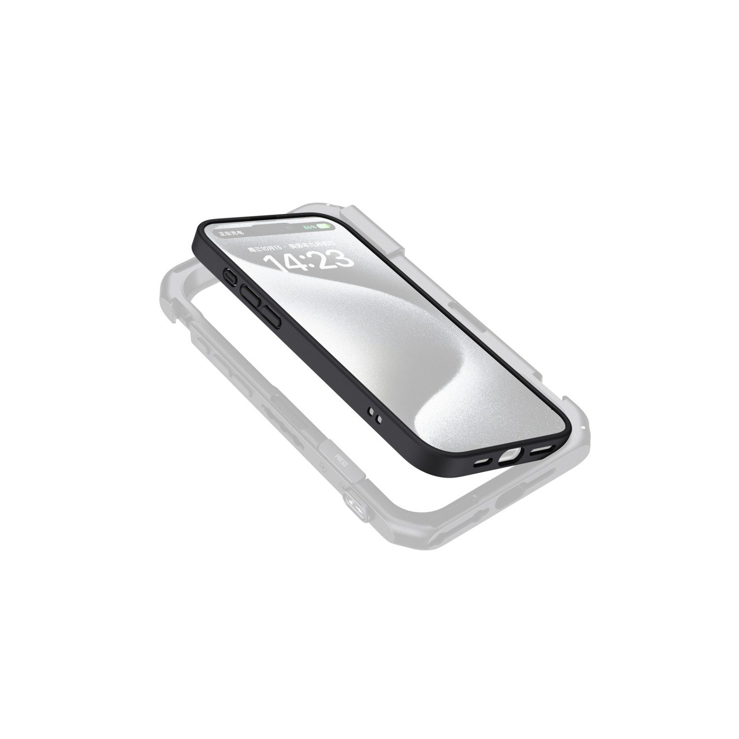 La funda, que proporciona la protección diaria necesaria para el teléfono, también cuenta con un imán en la parte trasera para ser compatible con la gama de accesorios MagSafe. Además, la funda cuenta con un orificio para cordón en el lateral que permite fijar cómodamente cordones o correas de muñeca, lo que facilita su transporte.