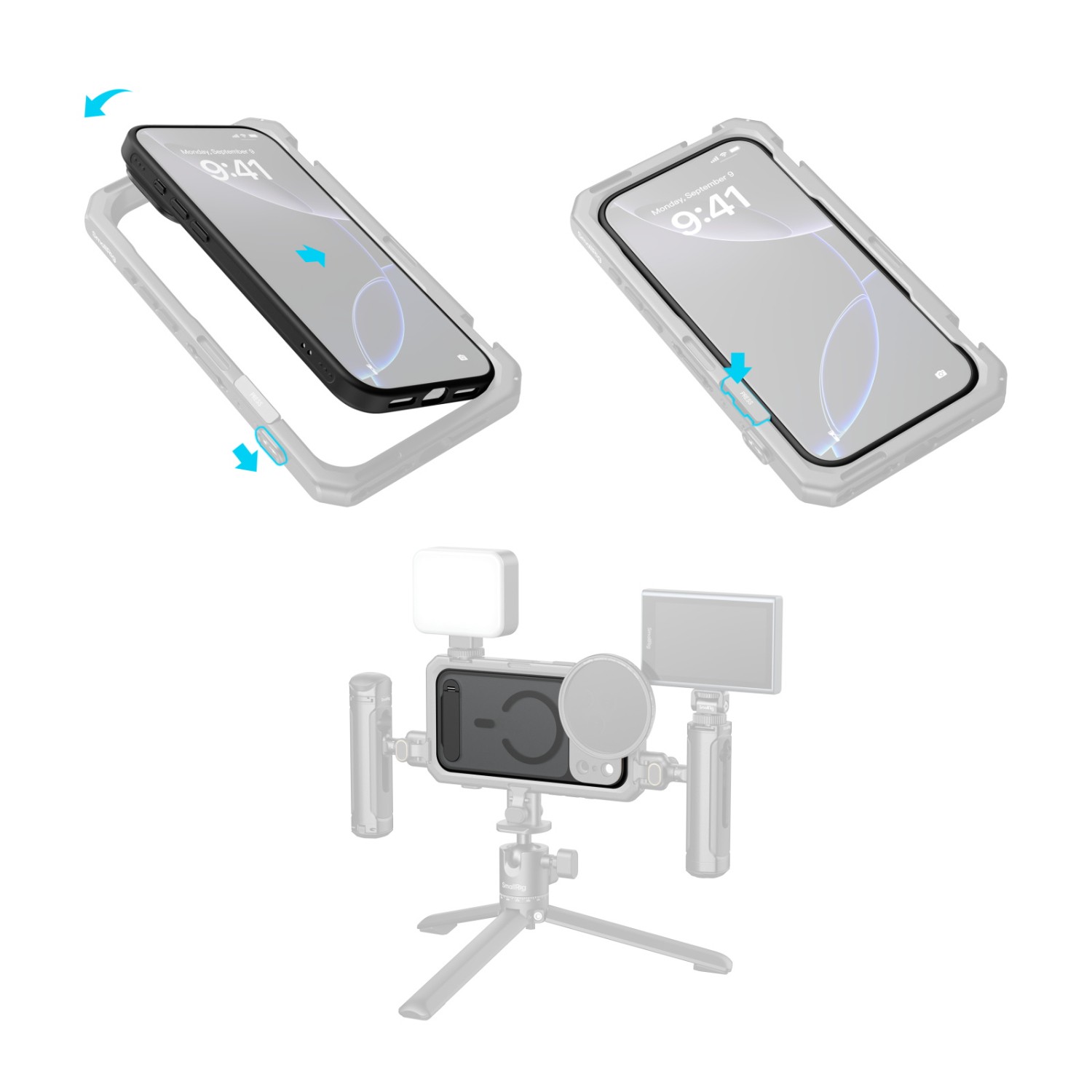 Mejora tus fotos con el iPhone 17 Pro gracias a la ligera funda SmallRig FilMov 5549. Esta elegante funda negra ofrece un mejor agarre y protección para la filmación y la fotografía móvil profesional. Su diseño minimalista garantiza comodidad y facilidad de uso, al tiempo que proporciona puntos de fijación seguros para los accesorios. Descubre una nueva dimensión de creatividad con este accesorio imprescindible para el iPhone 17 Pro.