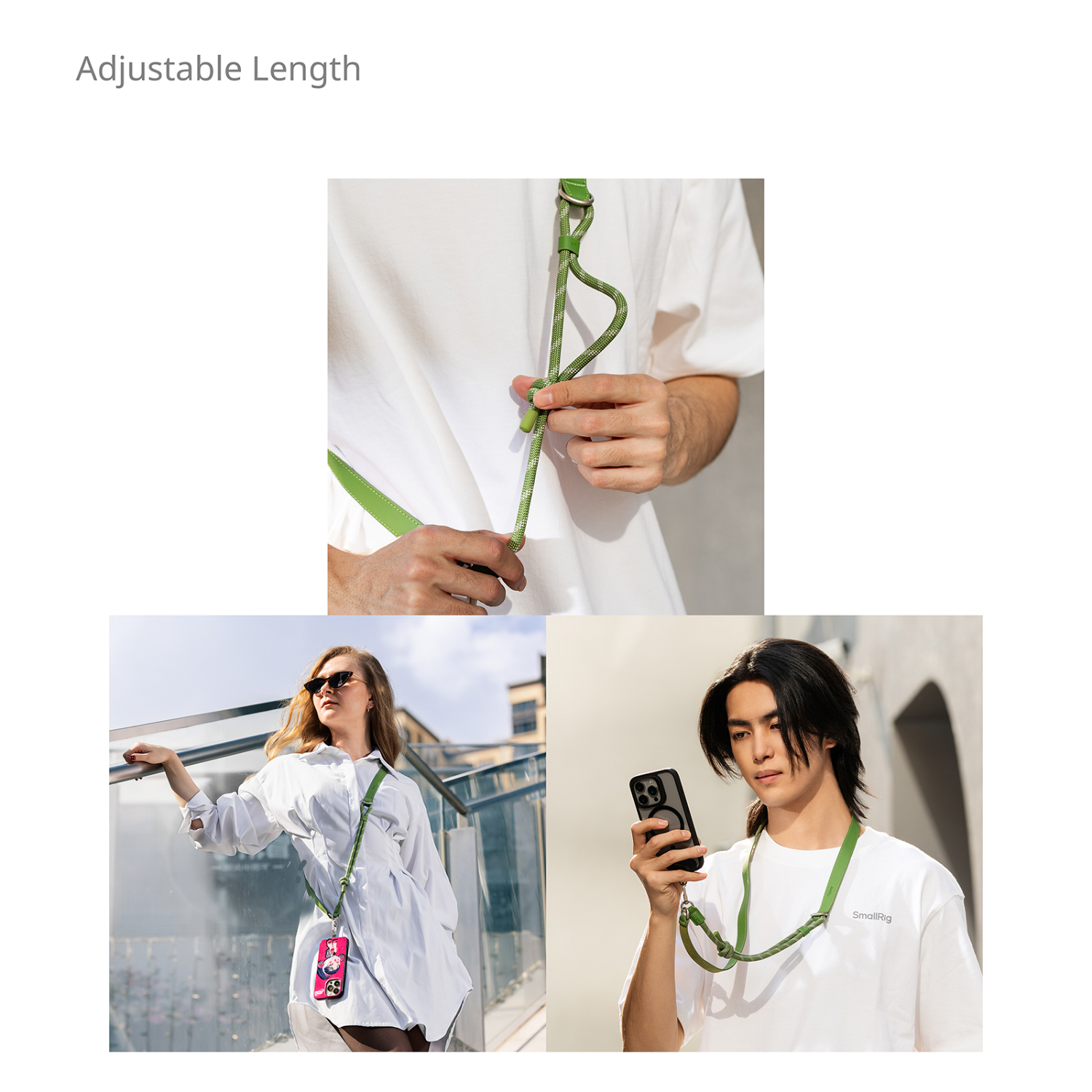 1. Longitud ajustable: la correa de nailon se puede ajustar para llevarla alrededor del cuello o colgada del hombro, adaptándose así a diferentes estilos.
