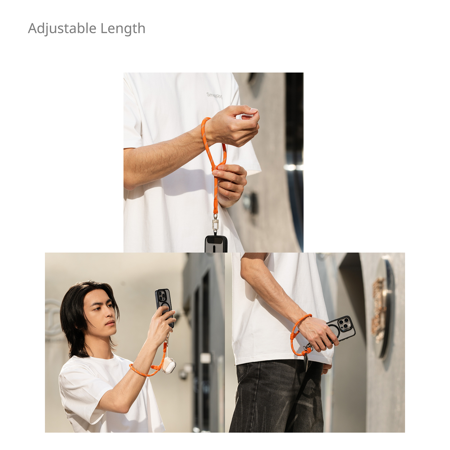 La correa de muñeca para teléfono SmallRig FilMov —una combinación de funcionalidad, estilo y respeto por el medio ambiente— tiene una longitud ajustable y un robusto gancho metálico para colgar el teléfono o accesorios como AirPods, llaves y llaveros. Su instalación sin herramientas ofrece una comodidad sin esfuerzo en el uso diario.
