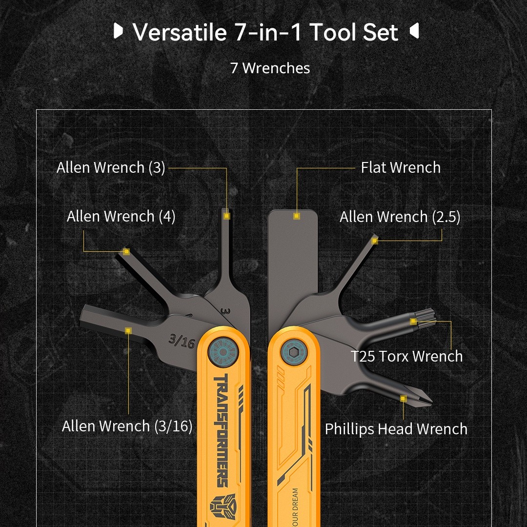 · Juego multifuncional 7 en 1: incluye 4 llaves Allen (2,5 mm, 3 mm, 4 mm, 3/16"), 1 destornillador plano, 1 destornillador de estrella y 1 destornillador Torx T25