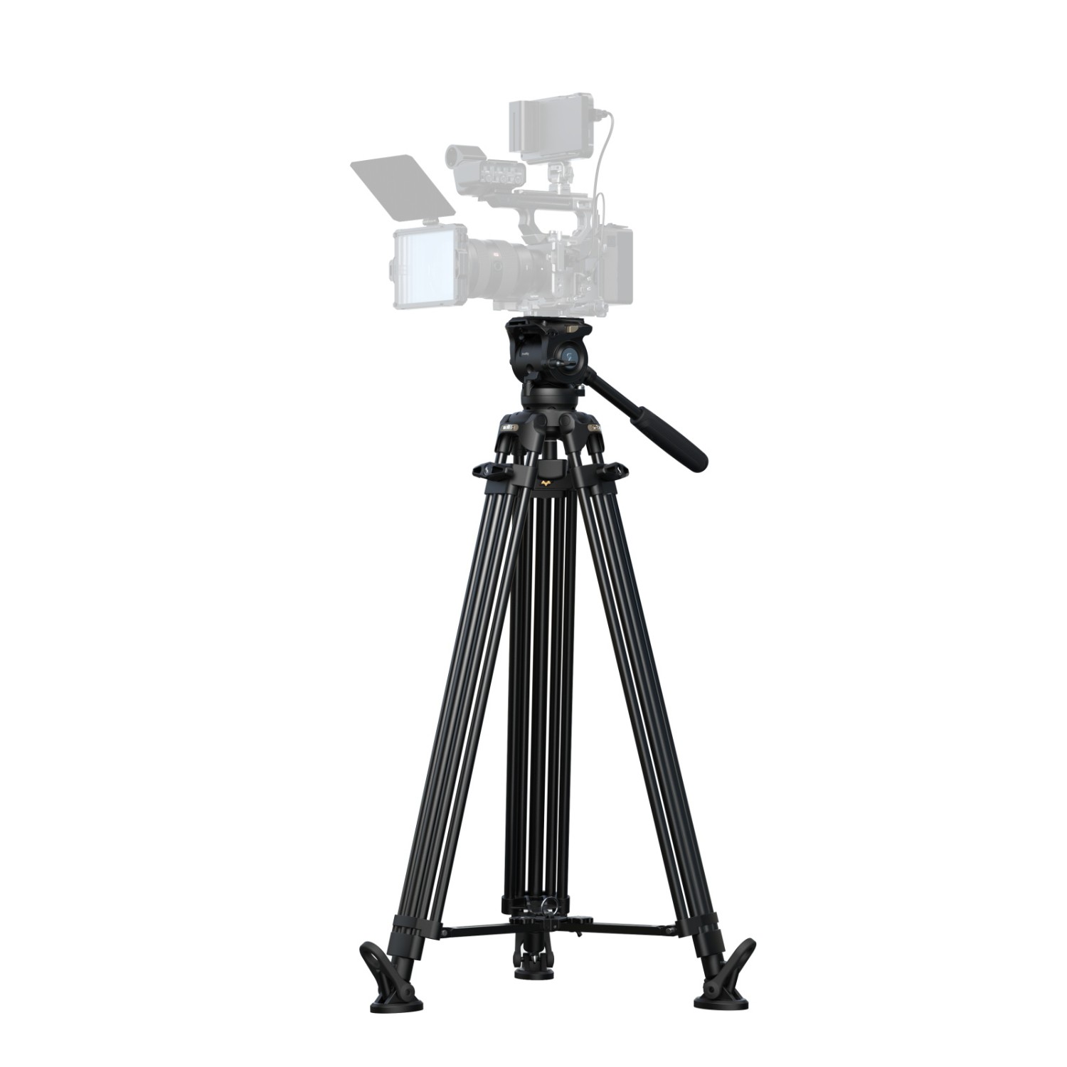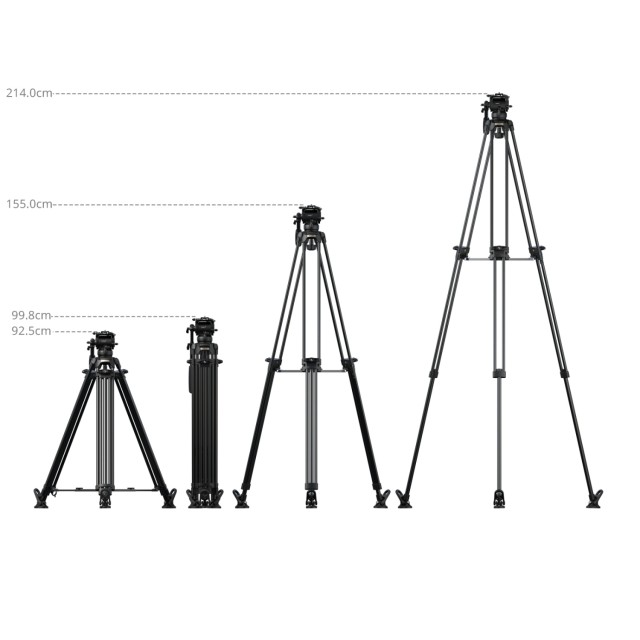 El trípode está equipado con un cabezal fluido con mecanismo de equilibrio de 6 grados y admite cargas de 0 kg a 6 kg (0–13,2 lb), mientras que el cabezal puede trabajar de forma segura con 10 kg (22 lb) y soportar una carga útil máxima de 15 kg (33,1 lb). Su altura de trabajo oscila entre 92,5 cm y 214 cm (36,4–84,3 pulgadas), lo que permite girar, inclinar y fotografiar desde las alturas con fluidez.
