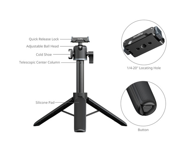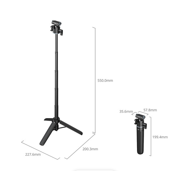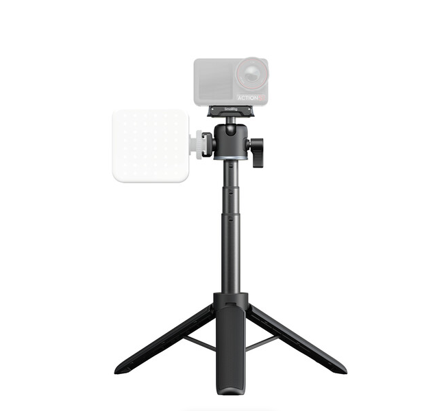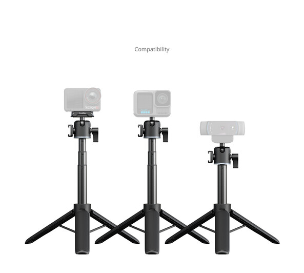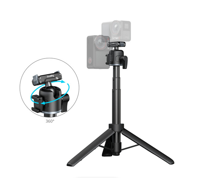 Convierte tu cámara de acción compacta en un dispositivo versátil para uso manual o con trípode gracias al mango/trípode telescópico SmallRig, que consta de una barra de aluminio de cuatro secciones con una longitud de entre 20 y 55 cm, una base de trípode mini plegable, una rótula ajustable con rosca de 1/4"-20 y una abrazadera de fijación rápida para cámaras de acción con una capacidad de carga de hasta 500 g, ideal para las series GoPro HERO y DJI Action (no se recomienda para la serie Insta360 X debido a la visibilidad de la barra en el modo 360°).