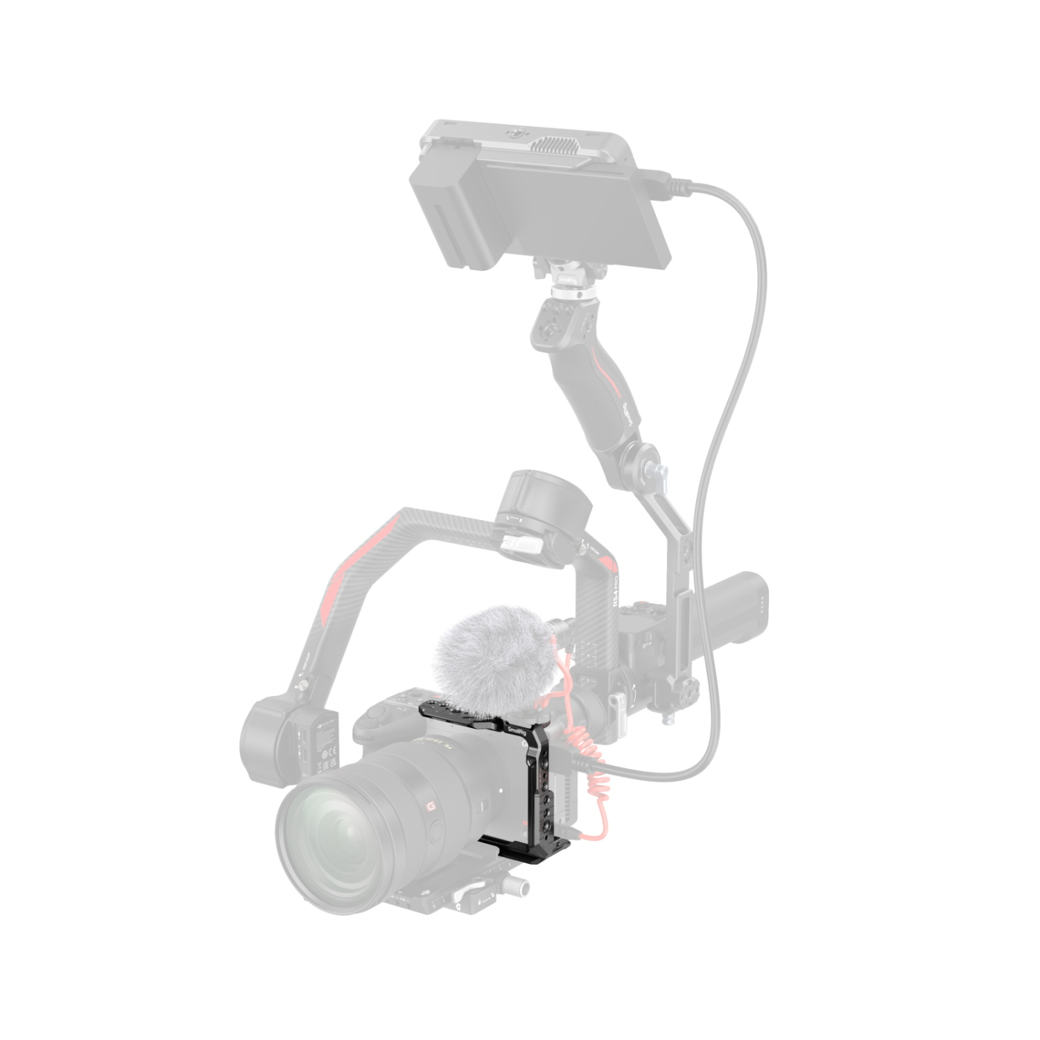 Gracias a varios puntos de fijación, incluidos orificios roscados de 1/4"-20, orificios de posicionamiento de 3/8"-16 ARRI y la barra NATO «HawkLock», permite una fijación rápida de accesorios como las empuñaduras laterales (ID 4485) y las empuñaduras superiores (ID 4483). La zapata fría permite acoplar dispositivos como el DJI Mic 2 o luces LED, mientras que la ranura QD de la base admite correas de hombro para una mayor portabilidad.