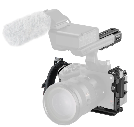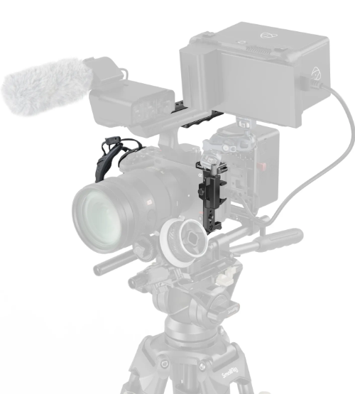 La estructura de la jaula también cuenta con un brazo articulado en la tapa de la batería, que mejora la comodidad de sujeción para el meñique, y un triple cierre que evita que se gire durante la grabación. Gracias a los orificios de montaje en los lados izquierdo y derecho, es compatible con sistemas de control de objetivos y ajustes de follow focus.