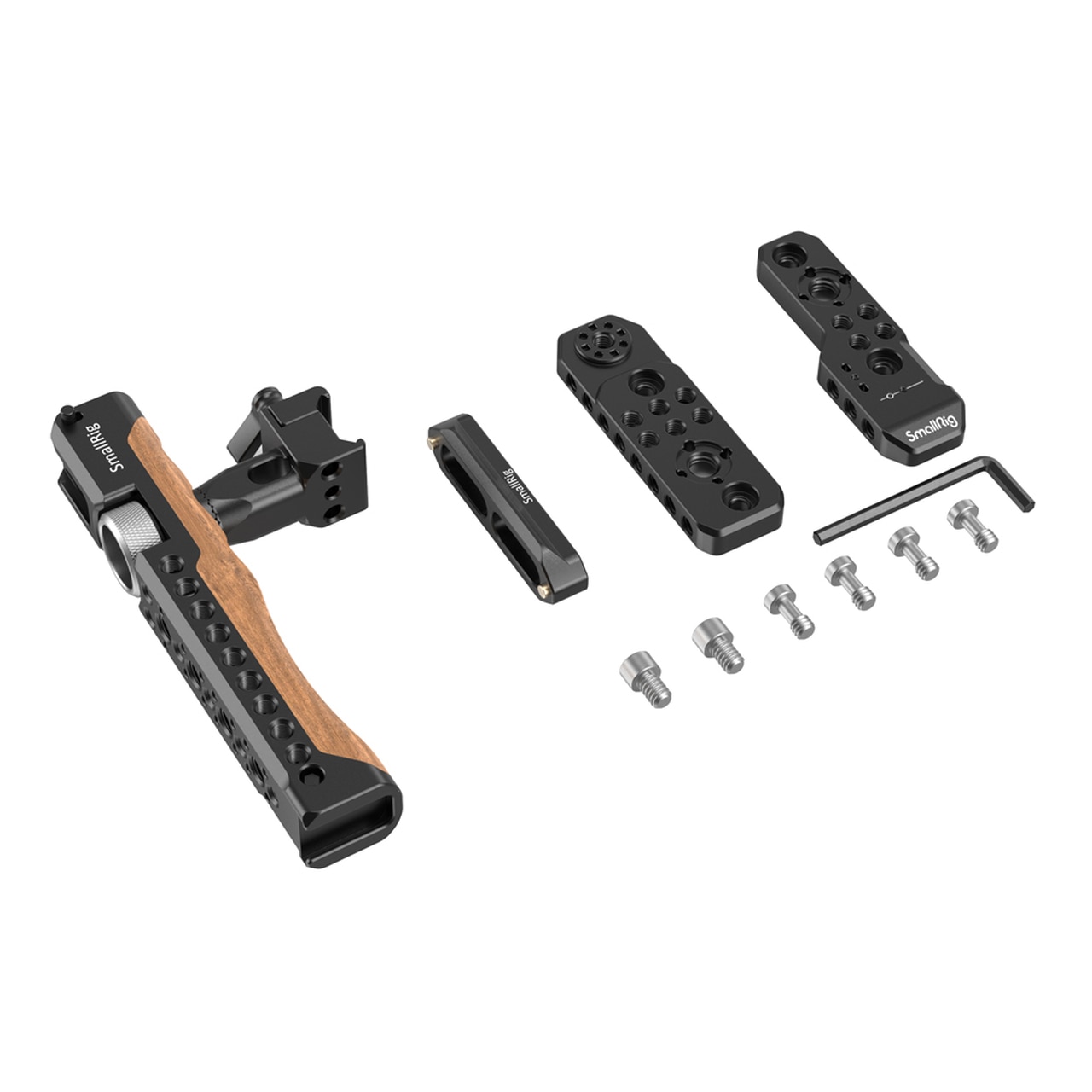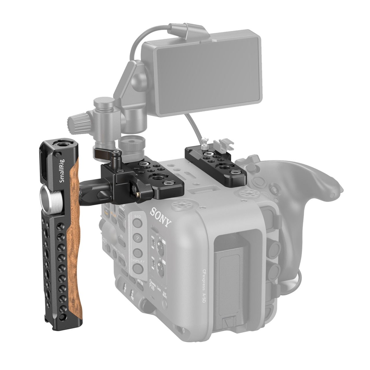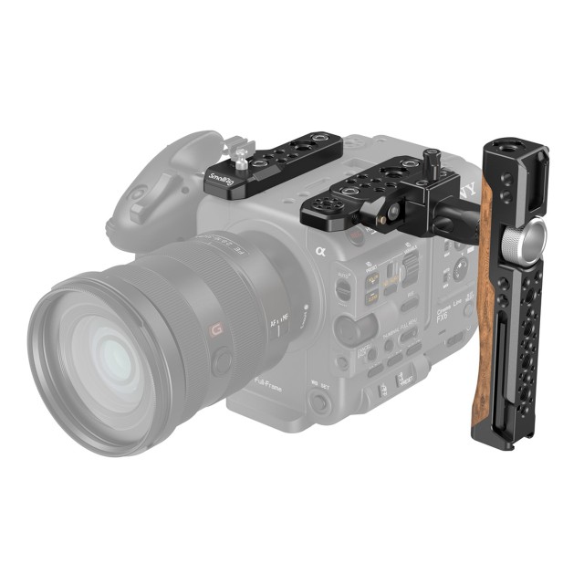 El SmallRig Handheld Rig para Sony FX6 3224 está diseñado como una solución portátil para la Sony FX6. Admite dos formas de sujetar la cámara: la configuración con empuñadura superior, que permite grabar desde un ángulo bajo, y la configuración con sujeción a dos manos, que permite grabar por encima de la cabeza. El mango se puede ajustar horizontalmente según el centro de gravedad de la cámara. Está fabricado en madera resistente a las heladas y diseñado ergonómicamente para un agarre cómodo.