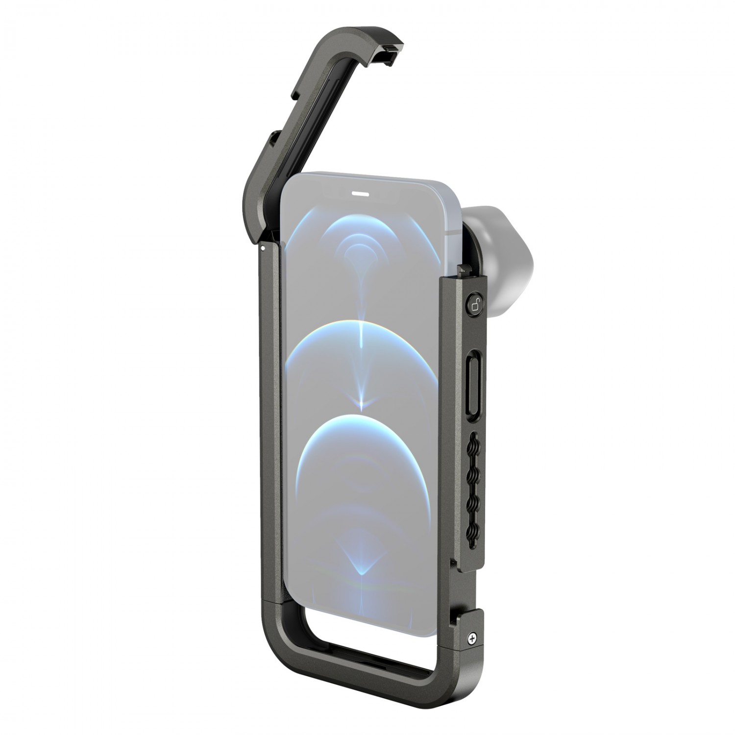 2. Cámara de vídeo portátil para el iPhone 12 Pro. El kit incluye una empuñadura para grabar con mayor estabilidad a mano alzada