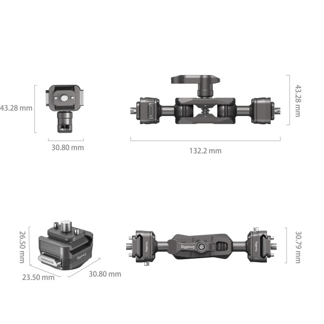 El brazo de fijación rápida SmallRig HawkLock H21 Magic Arm con rótula 4488 es un accesorio compacto y ligero con una exclusiva ranura deslizante de fijación rápida patentada. También está equipado con tecnología de posicionamiento mediante pasadores deslizantes con un sistema de bloqueo automático que permite el bloqueo vertical y soporta cargas de hasta 5,5 kg / 12,2 lbs. Gracias a su rótula de 20 mm / 0,8 pulgadas y a los tornillos de 1/4"-20 con pasadores de posicionamiento extraíbles en ambos extremos, esta rótula , cuando se utiliza con las jaulas para cámaras SmallRig 4119B, 3084C, 4088B y monitores con especificaciones similares de orificios de posicionamiento, evita eficazmente el desplazamiento del equipo, garantizando así su seguridad. La palanca con pulgar en la rótula permite ajustar la extensión, lo que facilita el ajuste al ángulo deseado. Gracias a las ranuras en ambos extremos de la palanca para el pulgar de la rótula, se aumenta eficazmente el rango de ajuste de la rótula, lo que permite un posicionamiento flexible del dispositivo según sea necesario.