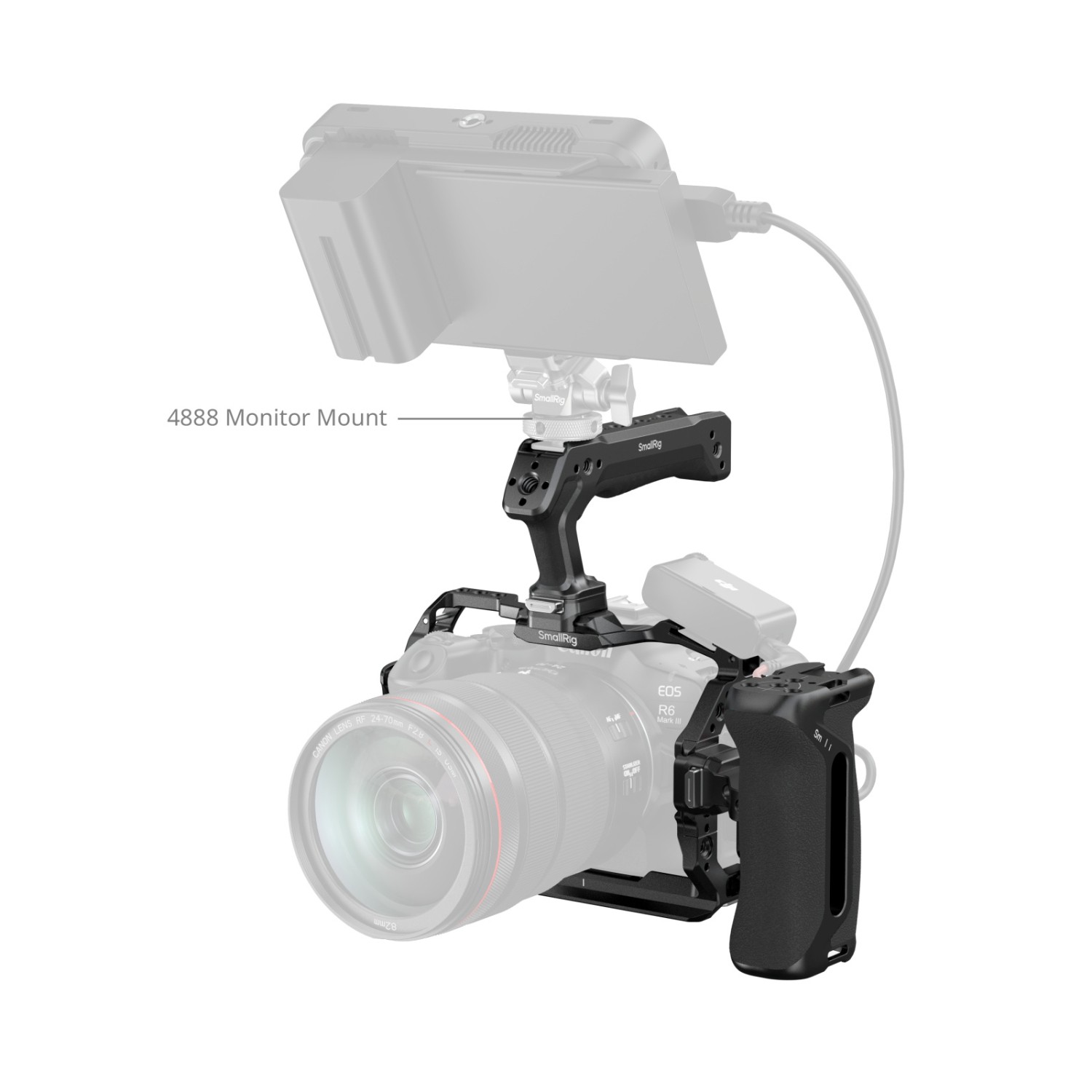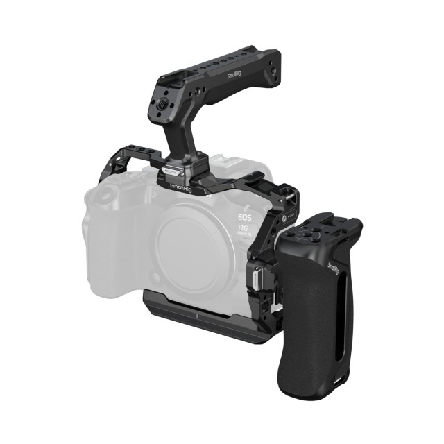 El kit de montura avanzada SmallRig 5958 para las cámaras Canon EOS R6 Mark III, R6 Mark II y R5 Mark II ofrece una protección completa y opciones de fijación versátiles. Gracias a los rieles Hawklock NATO, la placa de fijación rápida tipo Arca y las asas superiores y laterales ajustables, esta montura permite una integración perfecta de los accesorios. El paquete también incluye una abrazadera para cables HDMI/USB-C que garantiza un tendido seguro de los cables, lo que lo convierte en la opción ideal para configuraciones profesionales de fotografía y vídeo.