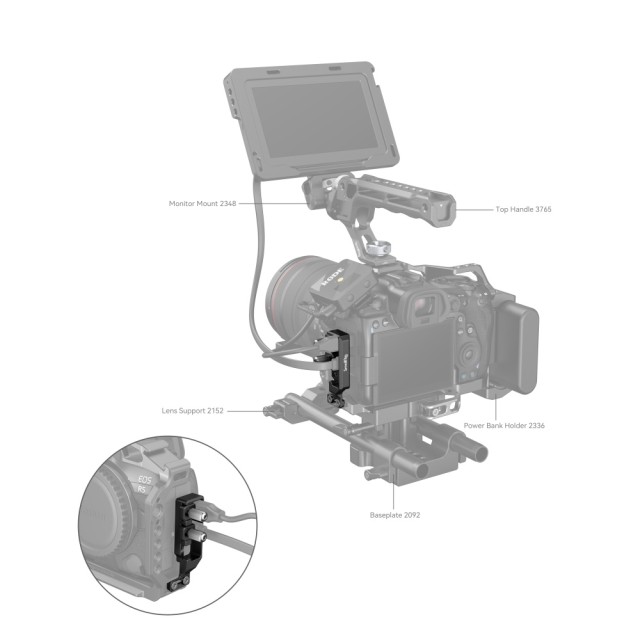 La abrazadera para cables SmallRig HDMI y USB-C para Canon EOS R5 / R6 / R5 C (2981B ) fija los cables HDMI y USB-C al chasis de la cámara, garantiza una transmisión estable de la señal y evita que se desconecten accidentalmente durante la grabación.