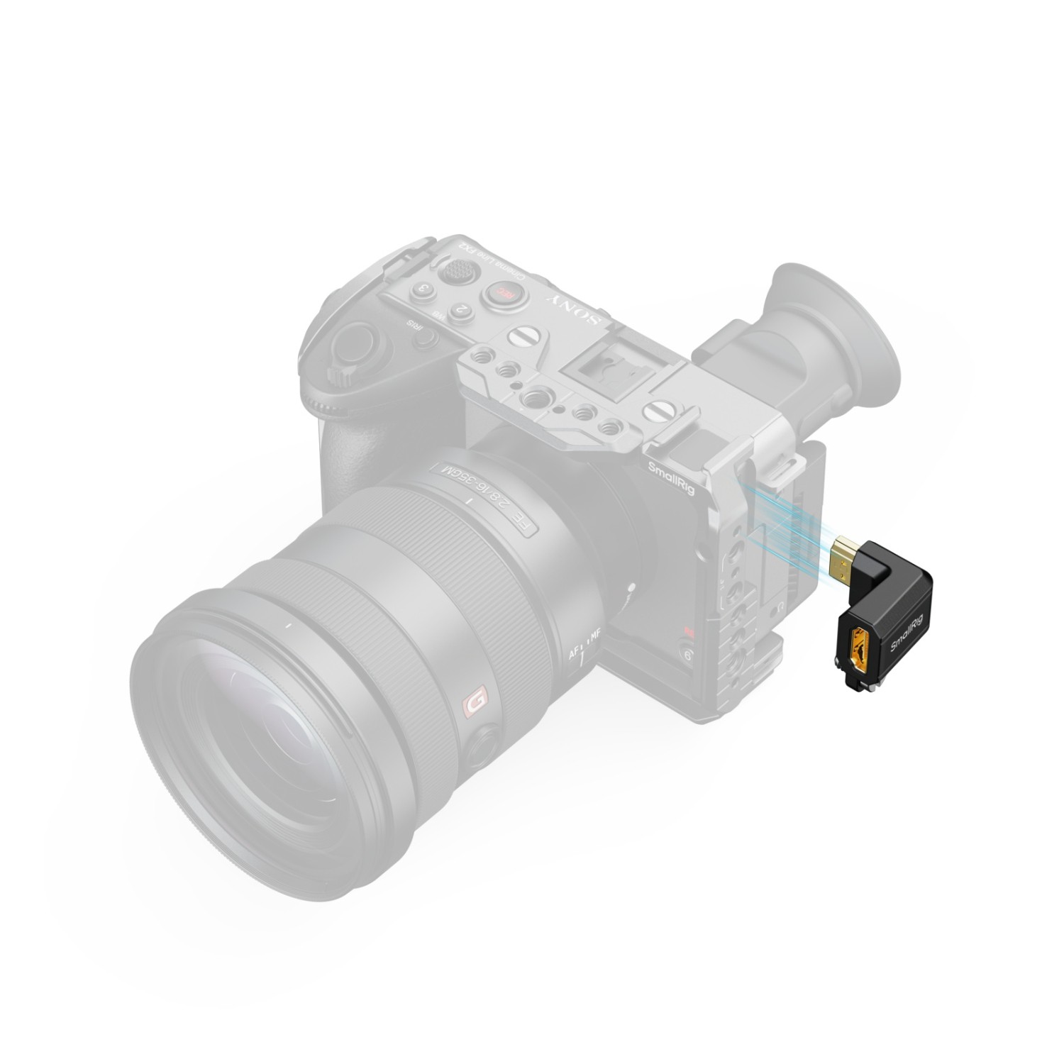 El adaptador SmallRig High-Definition HDMI para Sony FX2 5593 está diseñado para optimizar la grabación en vertical con cámaras Sony FX2. Sujeta eficazmente los cables HDMI para garantizar una transmisión de datos estable. El adaptador se acopla fácilmente al puerto roscado de la cámara mediante un tornillo, sin necesidad de herramientas, y redirige los cables HDMI para evitar interferencias con las placas de montaje en forma de L.