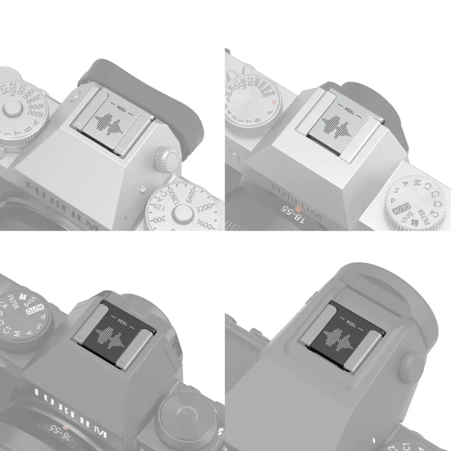 La cubierta para la zapata de la cámara Fujifilm de SmallRig (negra) 4698B está diseñada para proteger los contactos de la zapata de la cámara y realzar su aspecto retro. Se instala y se retira fácilmente encajándola en la interfaz superior de la zapata de la cámara. La parte inferior de la cubierta está equipada con una almohadilla de silicona blanda que evita que se raye la zapata. Esta cubierta, con tres elementos de diseño fundamentales, captura la esencia de la marca Fujifilm: la huella de la onda sonora «FUJIFILM», el año de fundación de Fujifilm —«1934»— y los contornos en colores a juego que se funden suavemente con el cuerpo de la cámara. La cubierta de la zapata está fabricada en aleación de aluminio anodizado y ofrece una experiencia táctil y visual de primera clase.